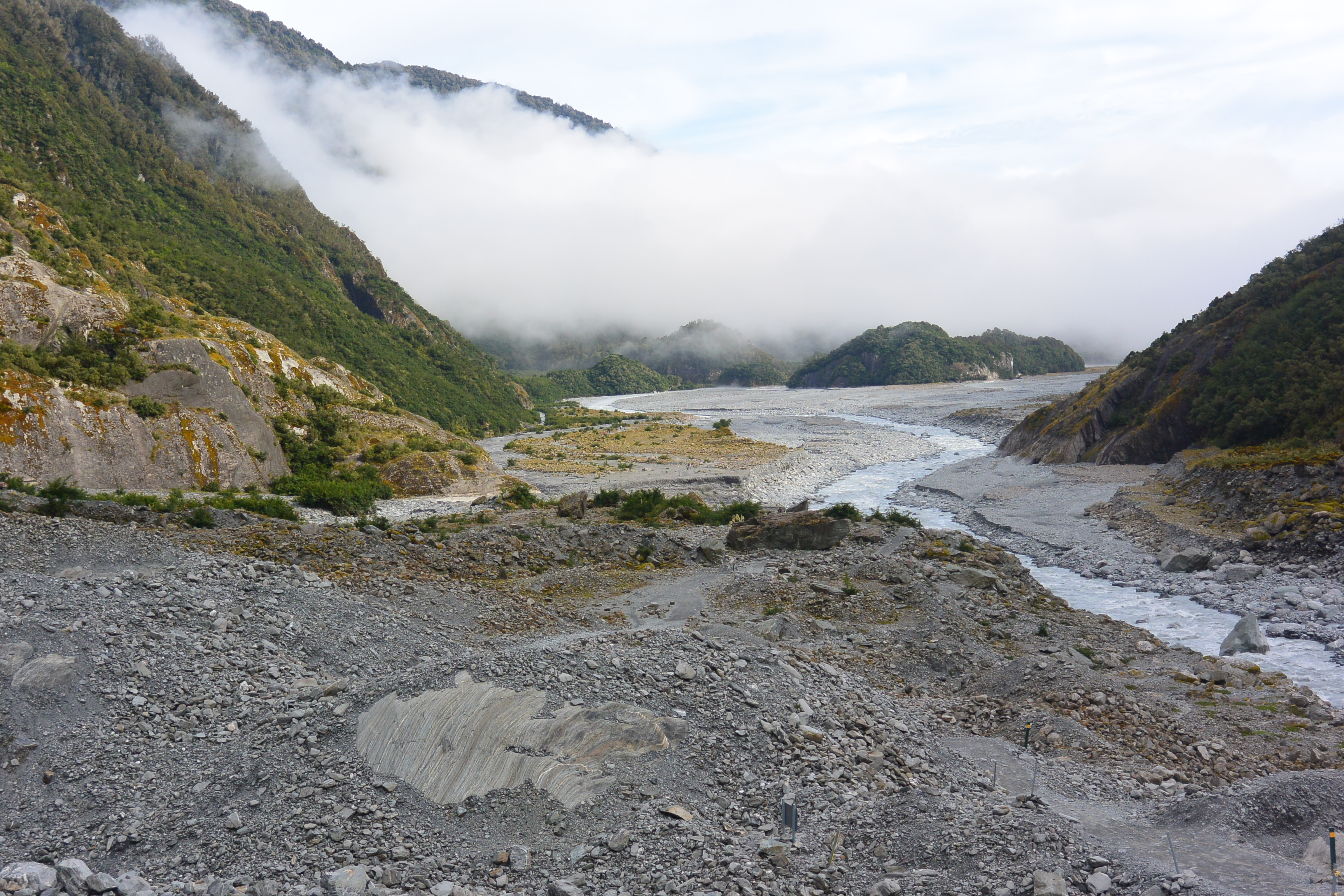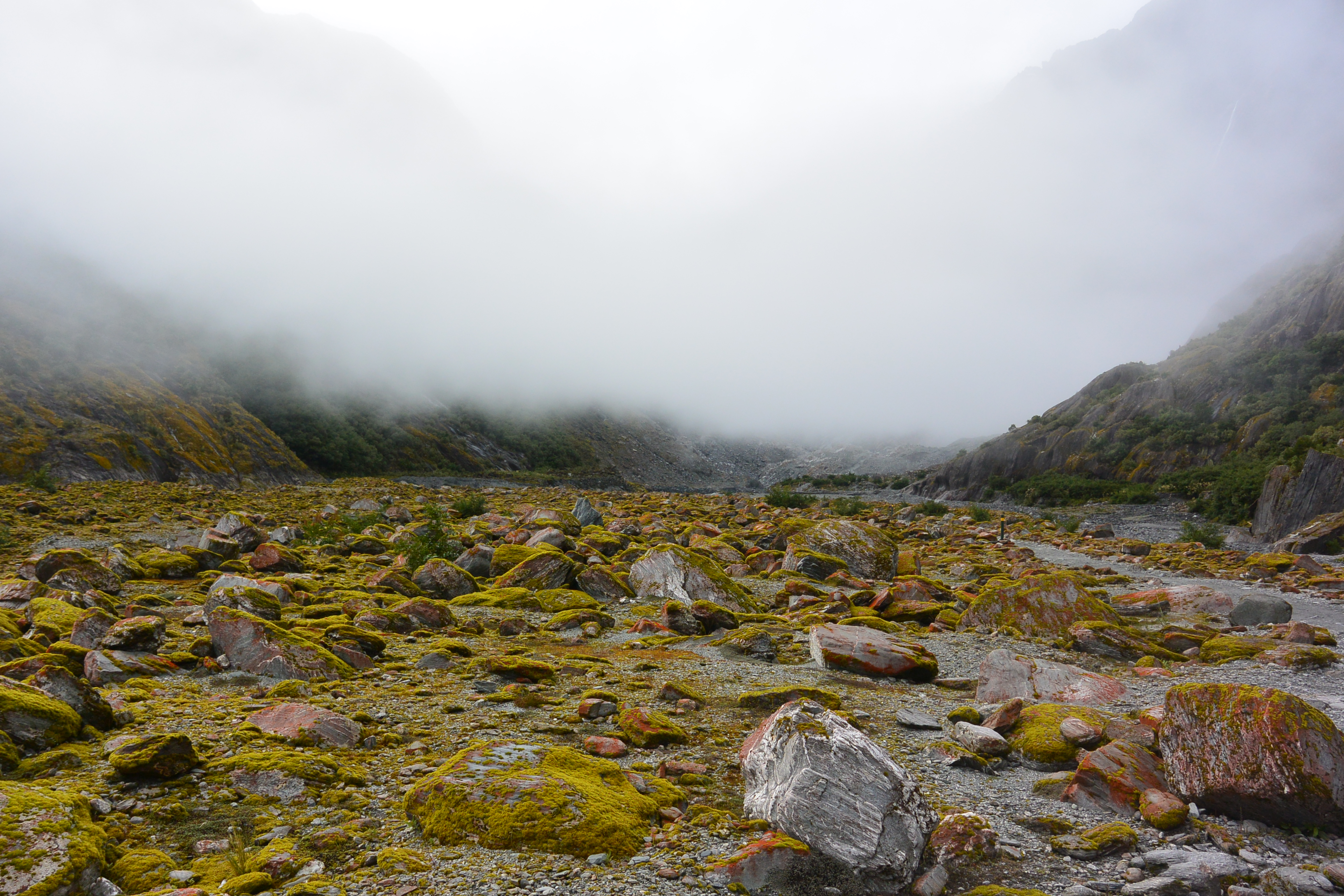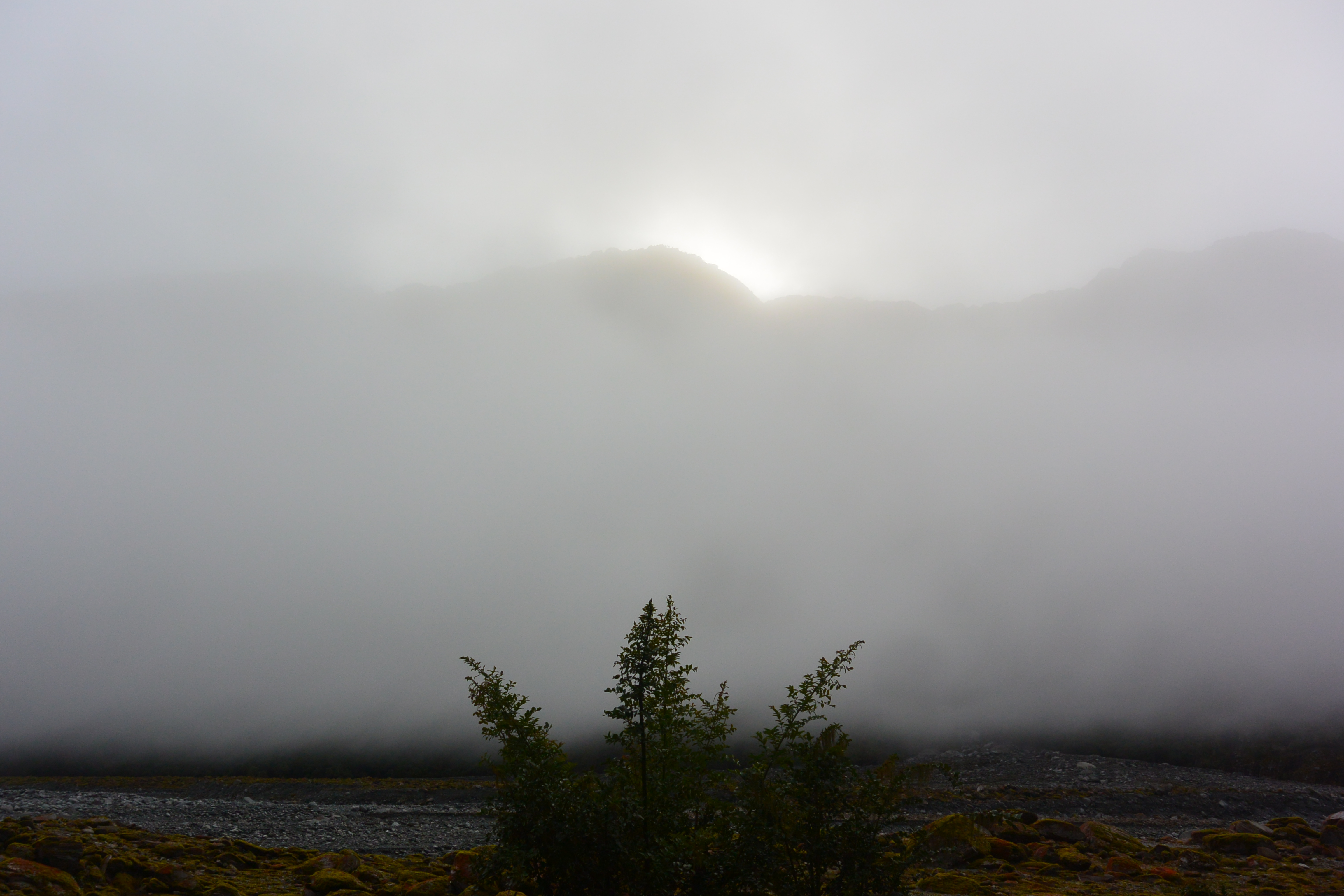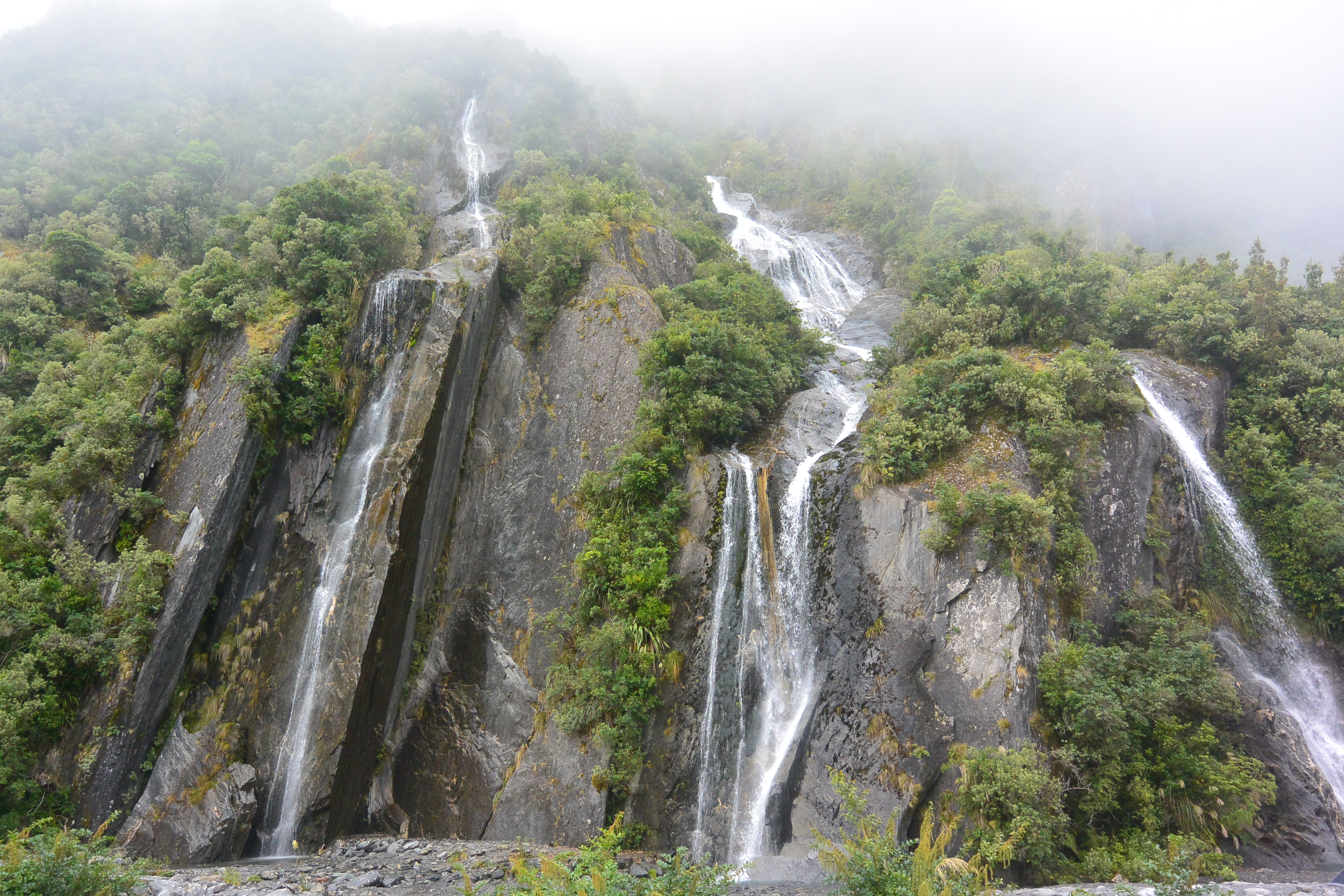 Franz Josef glacier itself was our first trip of the day, and we headed out early while the valley was still wrapped in fog. The river actually prevented one approach,
