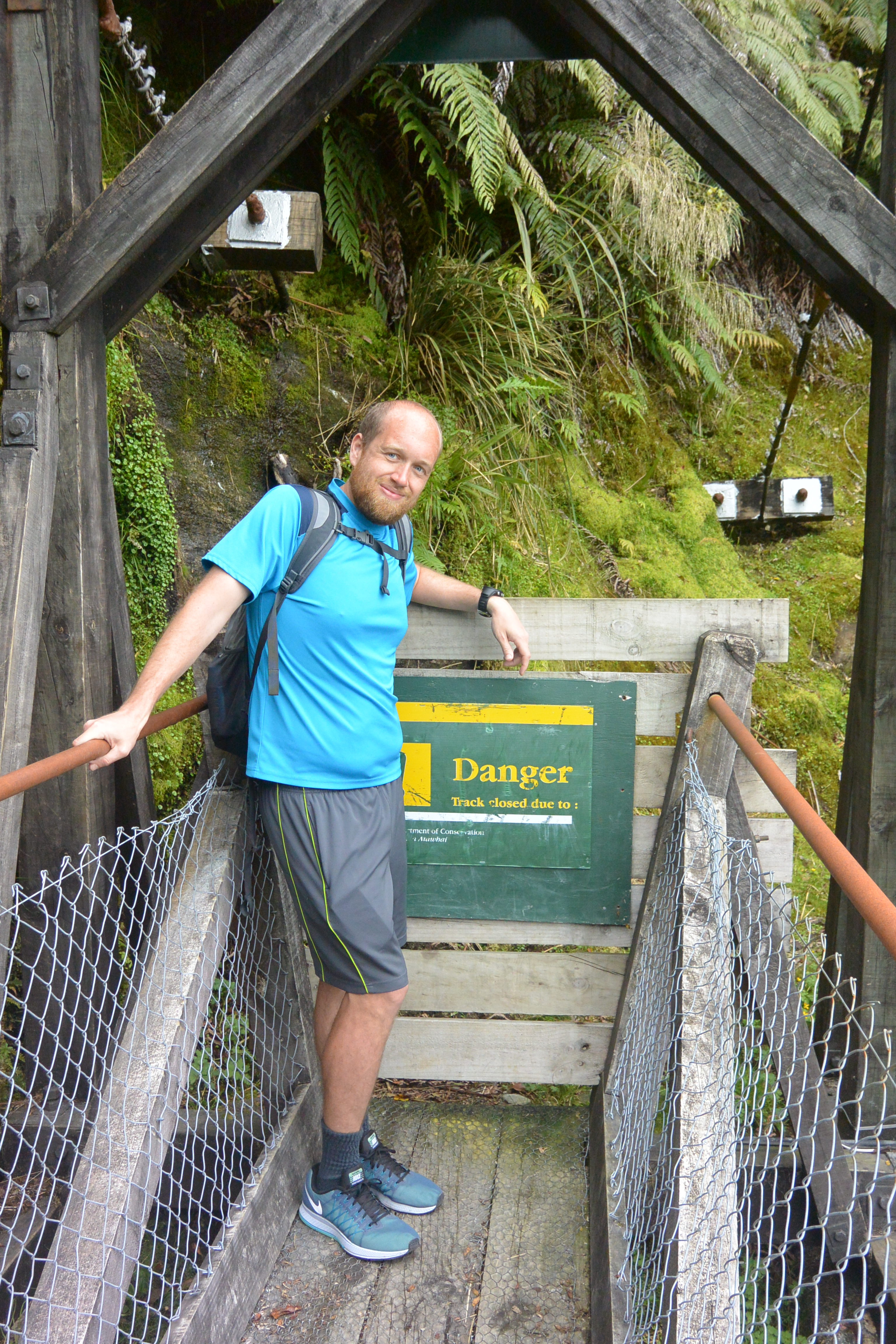 Returning to town, we recalled we'd seen several impressive trail bridges with no one on them on the other side of the glacier valley. Nick looked into seeing what trail