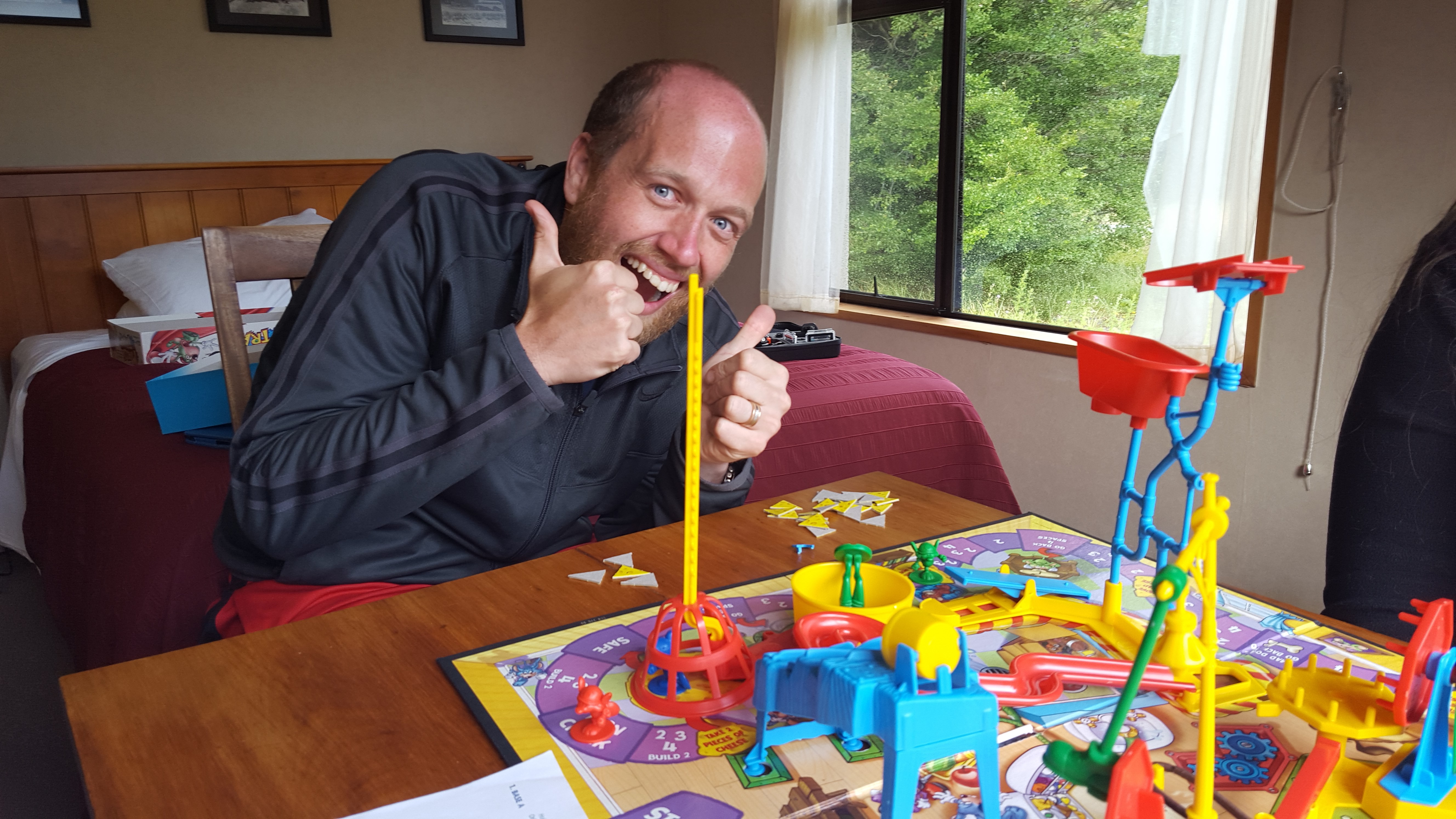 that with some garlic bread heated on the gas broiler in our room. I was distracted, and ended up singeing some of the bread, resulting in our fire alarm going off for some time. After some drinks,