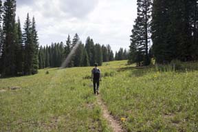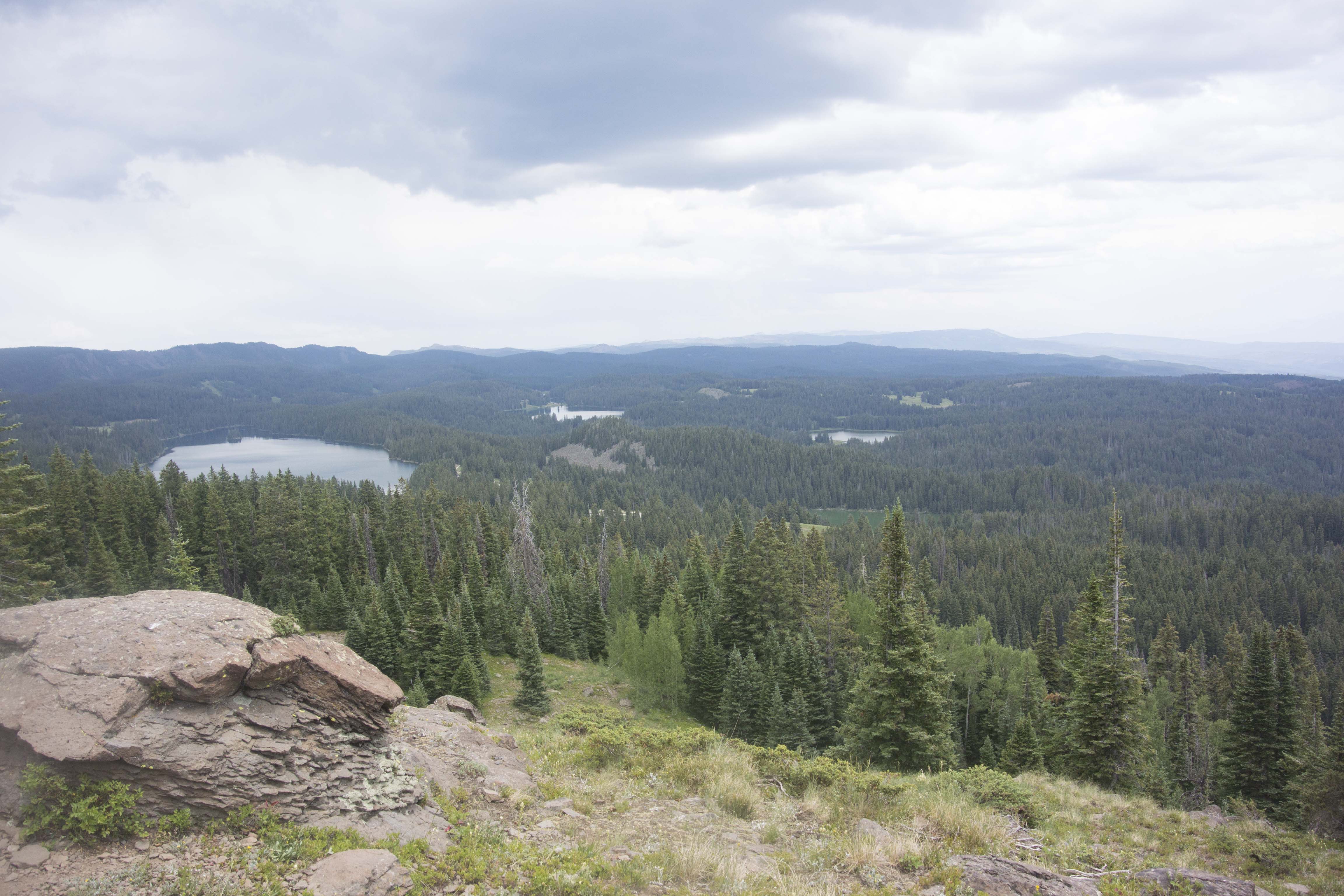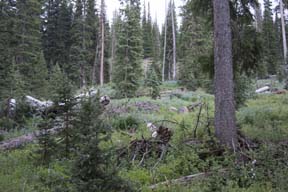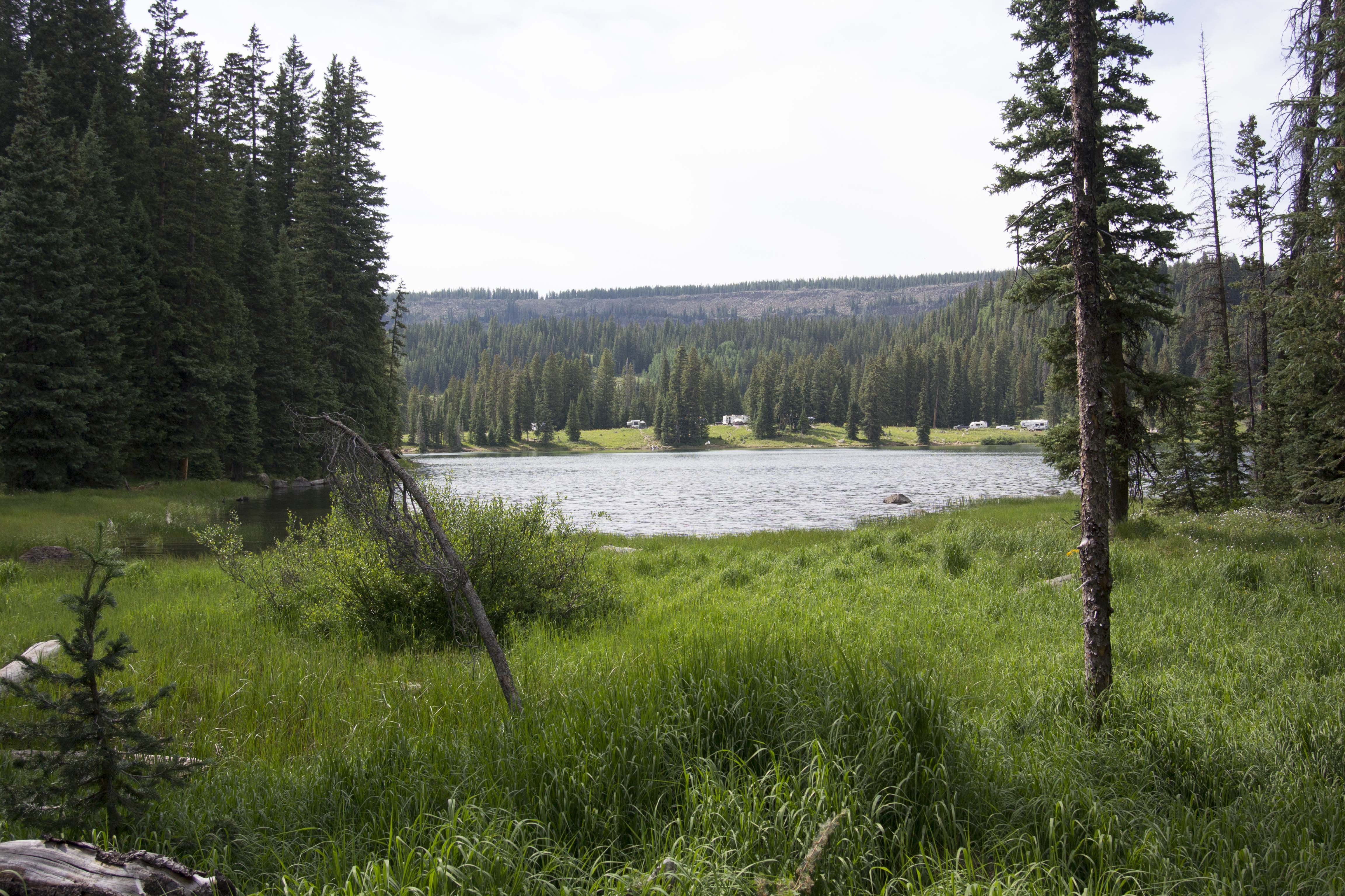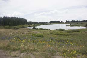 After returning to Grand Junction from Arches, we rose the next morning and headed east to the Grand Mesa, where we stayed for two days in a rented cabin. The first day, this one, we took a short walk along several of the small lakes there.Mouse over the pictures for commentary, click for large images