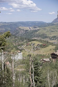 We arrived in Telluride at 10 pm the night before, and had a flight to catch from Grand Junction in the afternoon, so we didn't have much time to spend there. We had a nice breakfast at the local bakery (where Richard accidentally ordered two lox bagels) and did a short hike from the top of the ridge, after a gondola ride up.Mouse over the pictures for commentary, click for large images