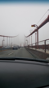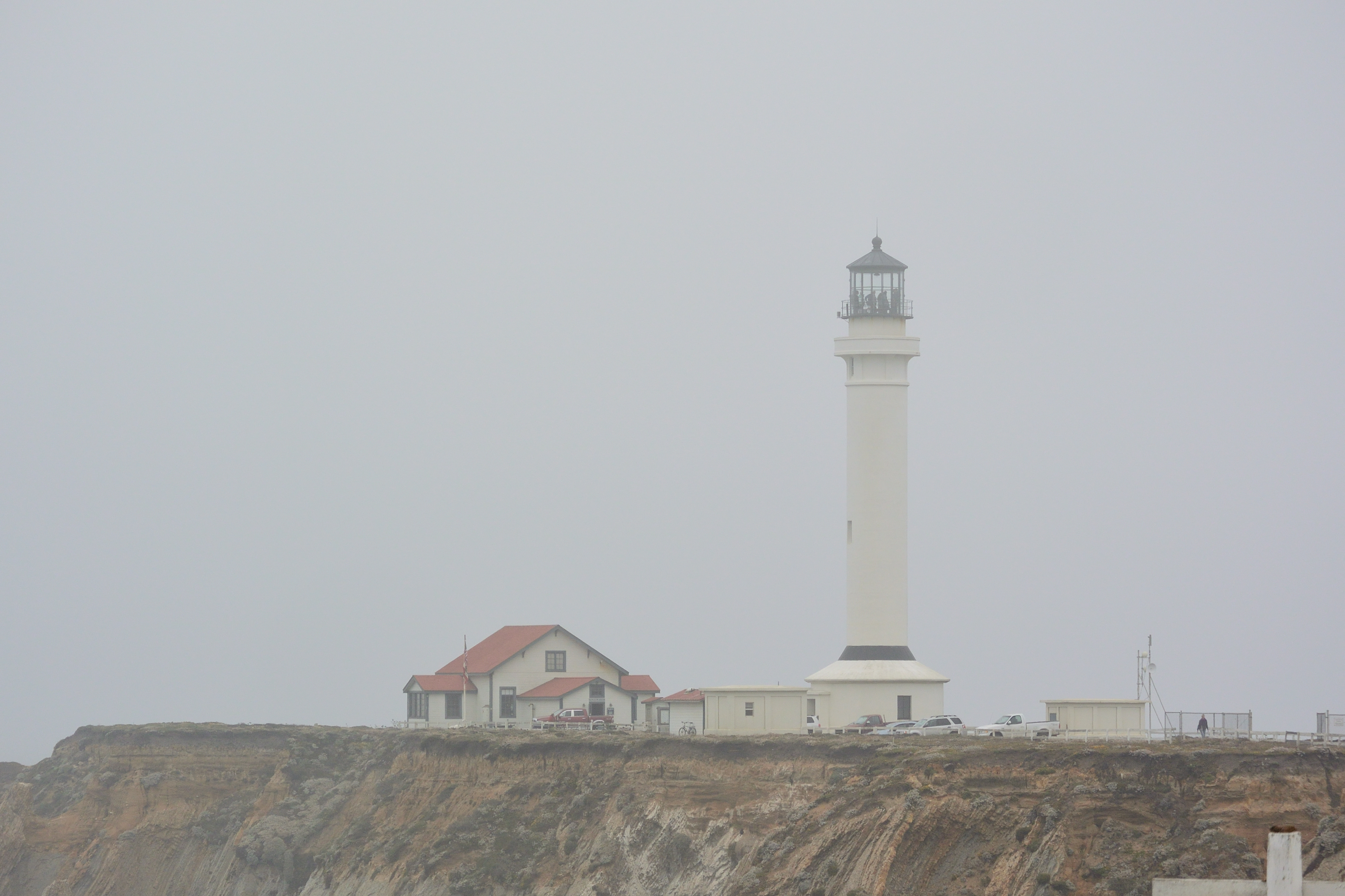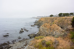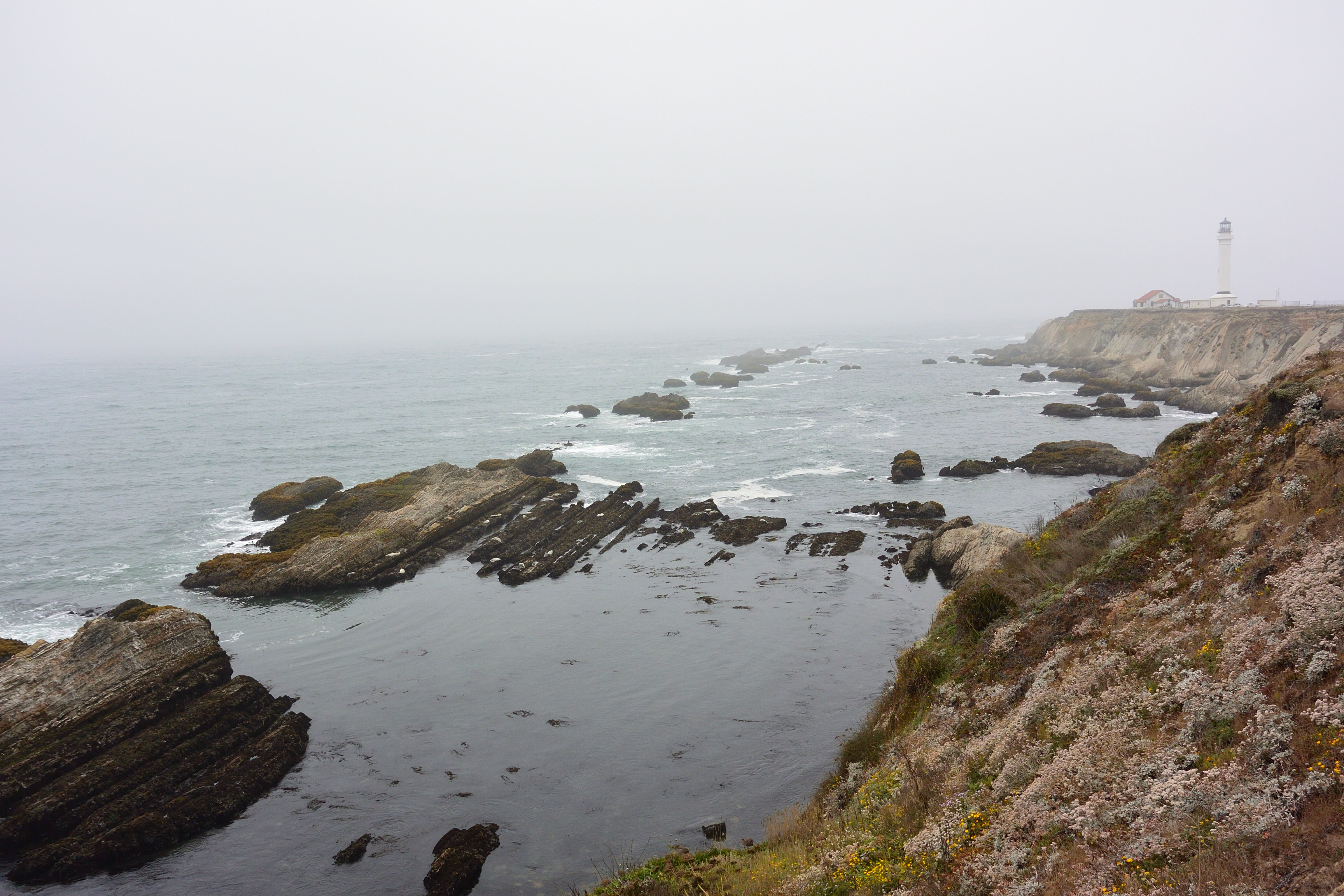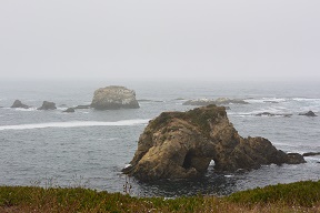 We got up early (though, really, we got up early every day, thanks to the 2 hour time difference) to get our car and get out of dodge. This went surprisingly smoothly, and we were on our way across the bridge and up the coast. On our way to Fort Bragg, we stopped a few places along the way, including a lighthouse. The coast was foggy, cold, and windy. I didn't mind it, but Matt didn't seem to like it so much.