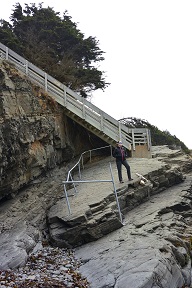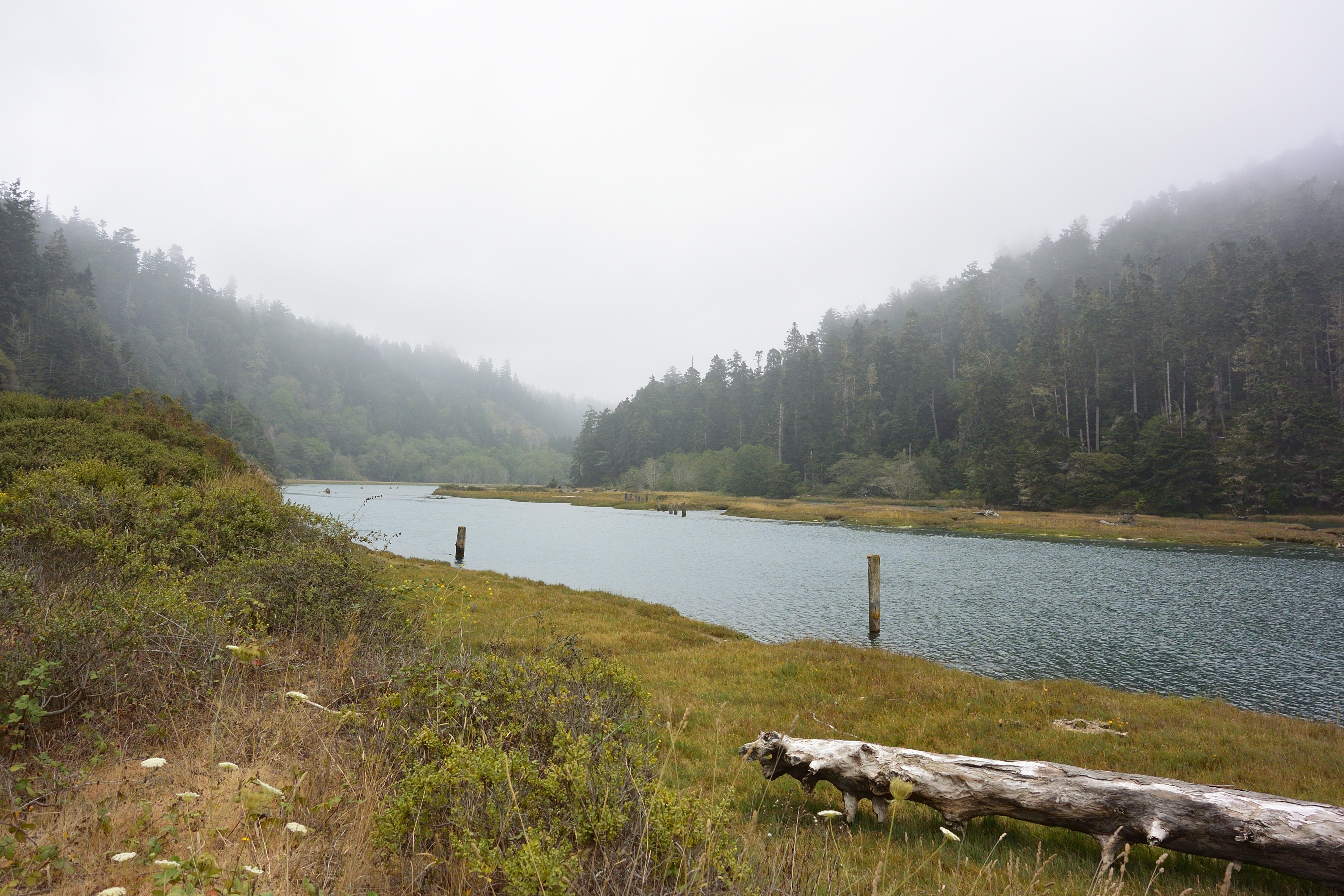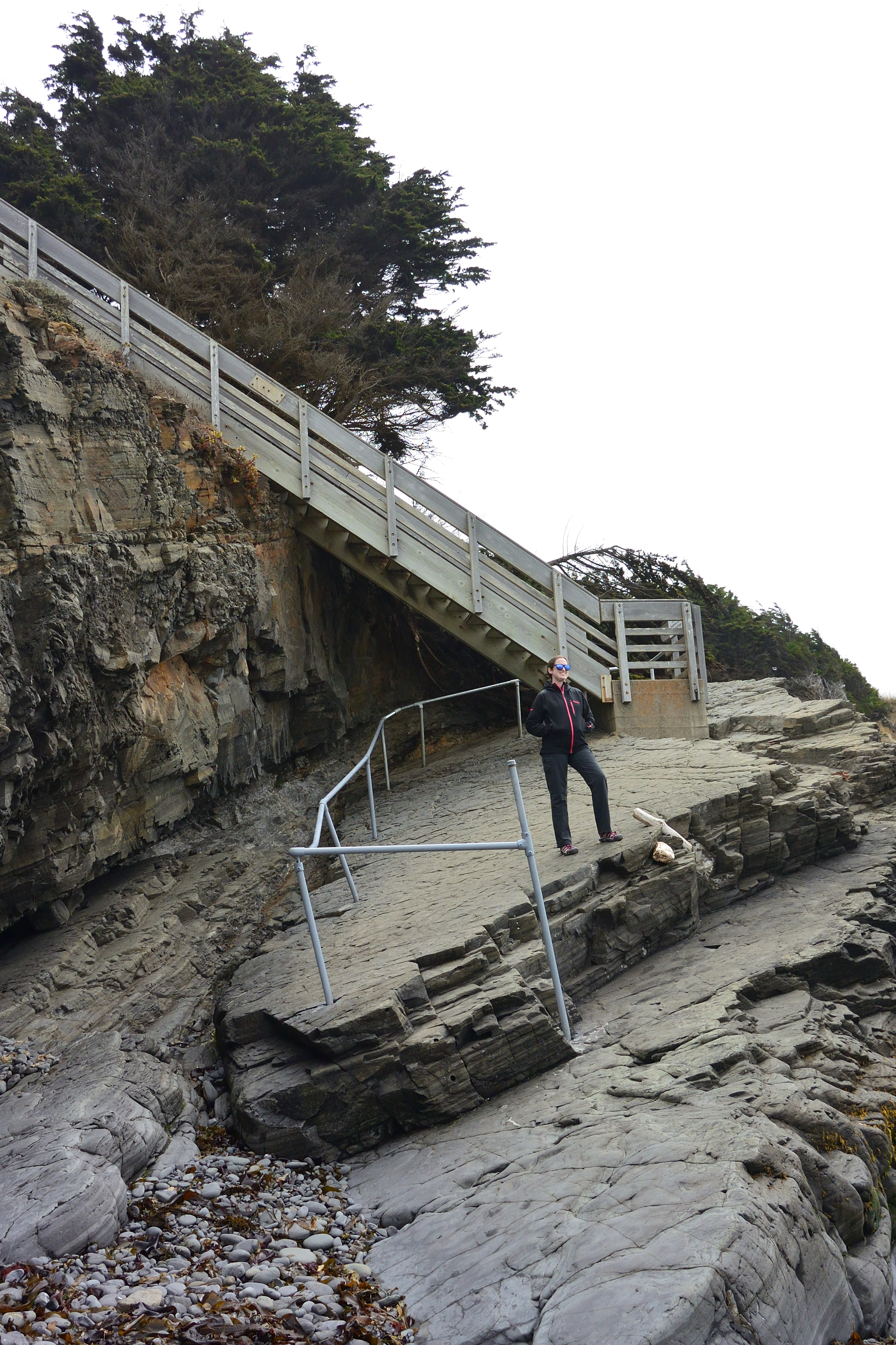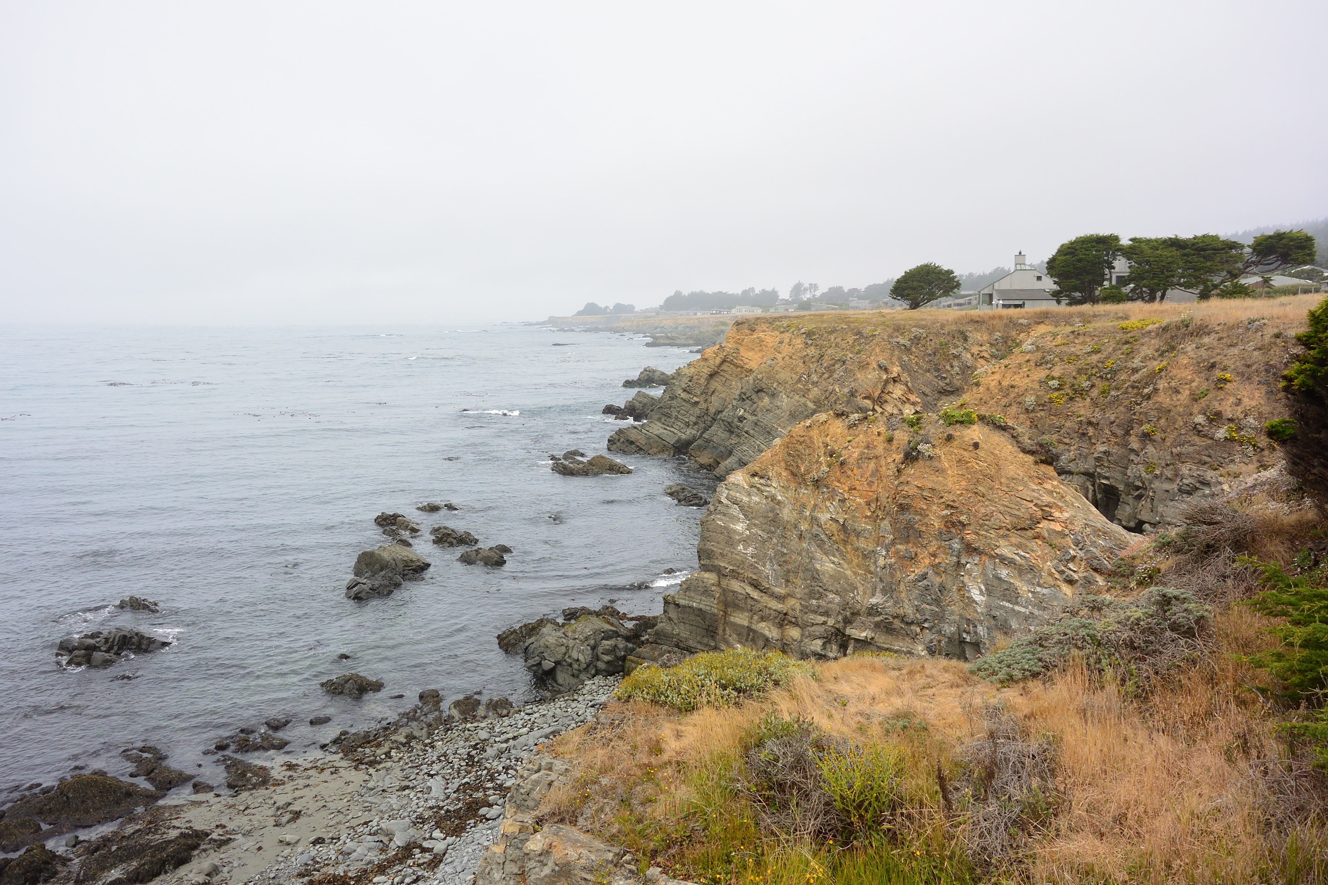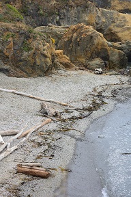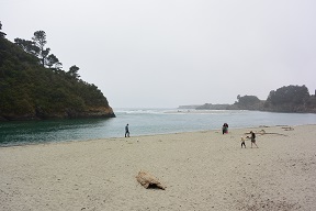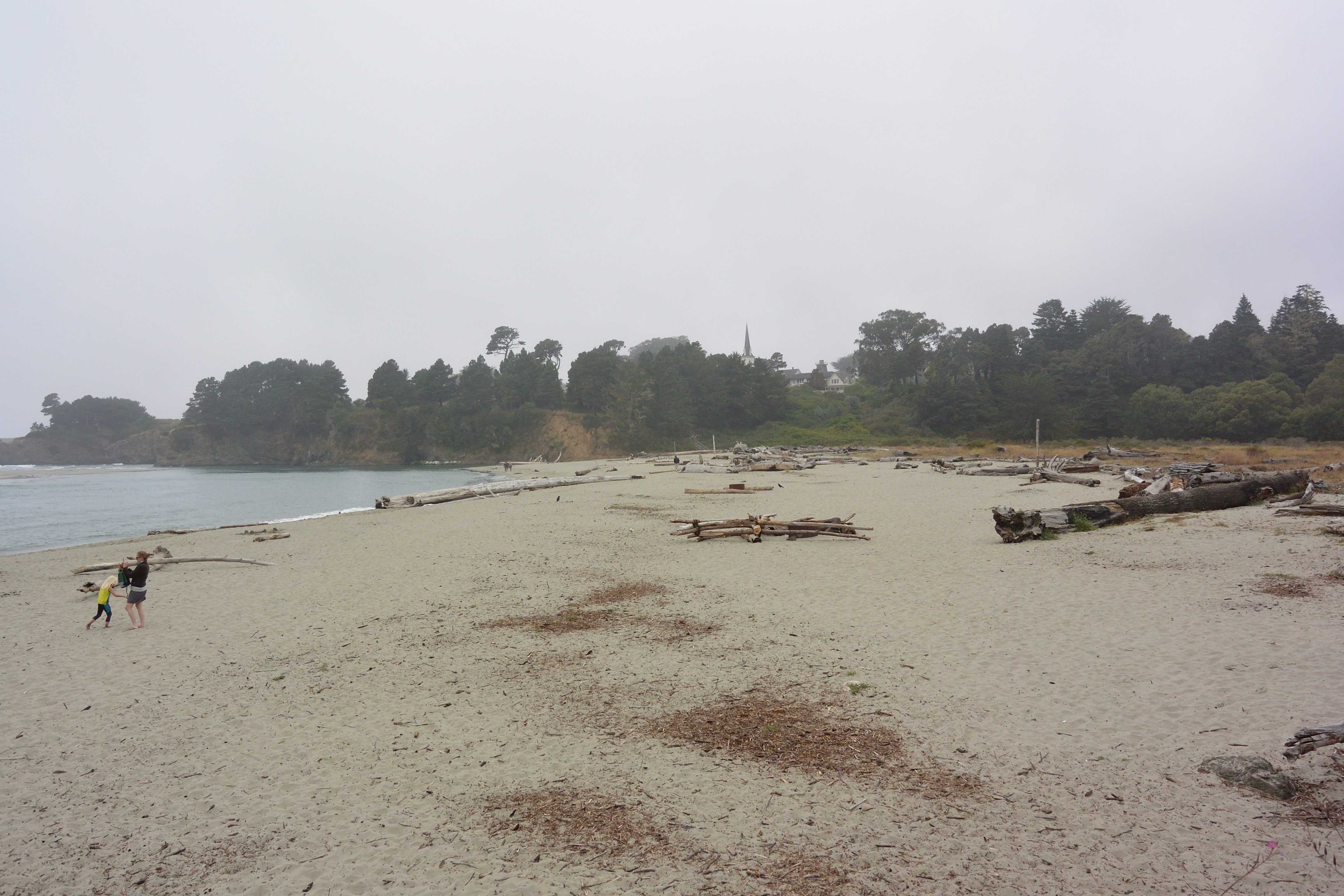 We still had plenty of daylight left, so we headed back out to see a state forest that Matt saw on the map, only to discover that it is literally just a forest and not a park with trails or anything. So we drove around a bit, eventually winding up on a cold and windy beach. After we went back to town Matt went off by himself to the legendary Glass Beach, which is completely roped off to keep people from stealing the glass pebbles which were really just washed-up trash to begin with. He was unimpressed.