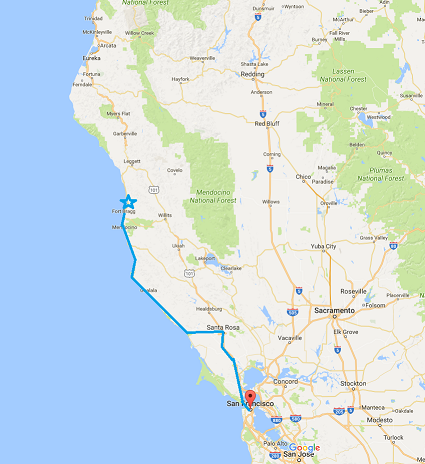 Fort Bragg is not a big town, and we were starving by the time we got there, so we stopped for lunch more or less at the first place we found. It was some weird Italian breakfast thing, and it was okay. Our hotel wasn't a hotel so much as an old house outfitted into a Bed & Breakfast, without the breakfast. Also without private bathrooms. Four rooms shared one. There were two towels.