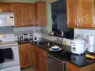 There were a number of renovations to our house this summer, we replaced the old damaged laminated countertops with some new granite countertops, then added a tile backsplash (Mostly Jen, I just cut tiles, and poorly at that) and painted much of the house blue.