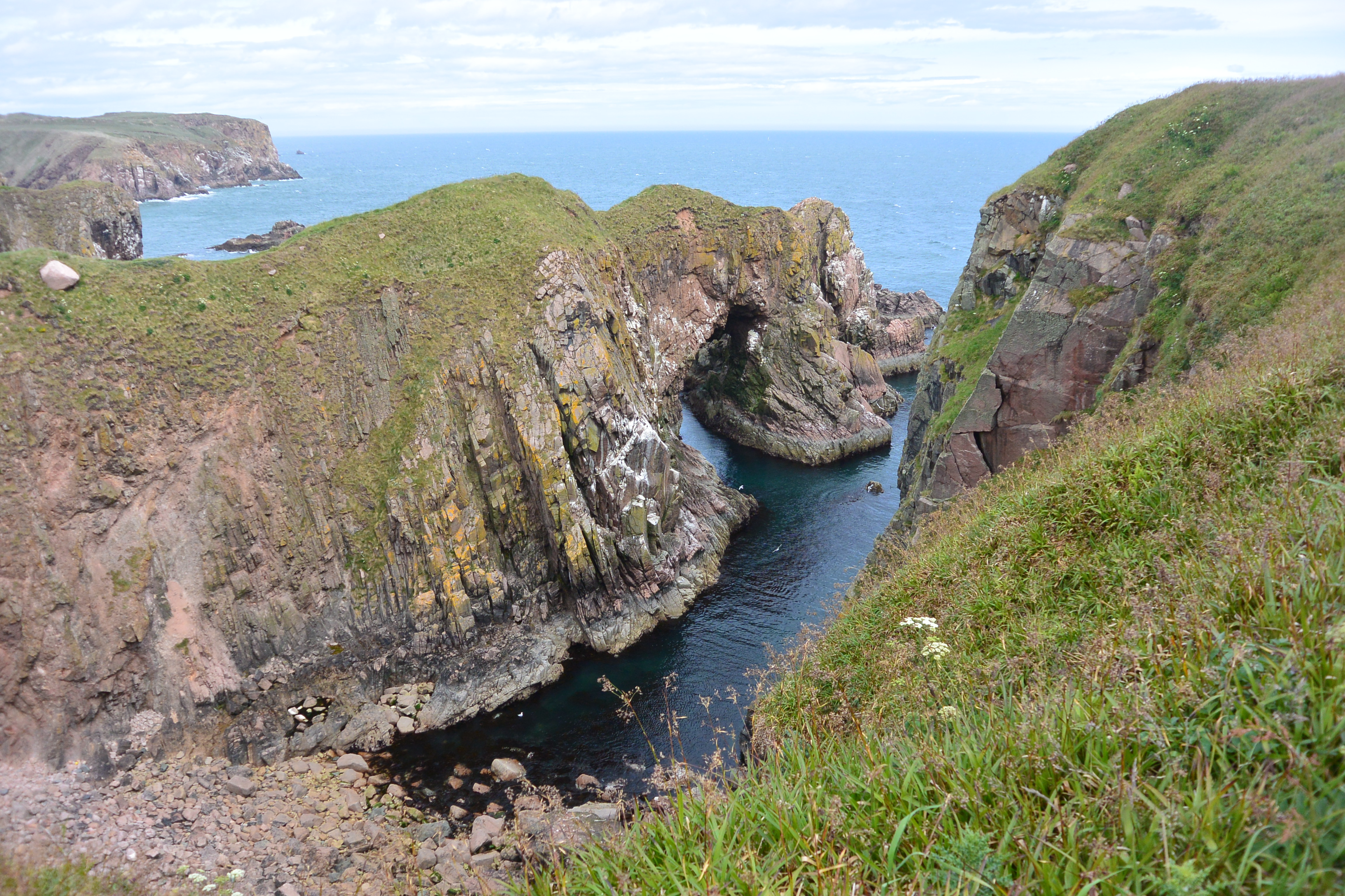 Day 12 - Pitmedden Garden and the Bullers 'o Buchan Using Aberdeen as our base, we ventured out to see some of the sights in the area around. Our first two stops were a walled garden and the stunning sea cliffs of the Bullers 'o Buchan.Mouse over the pictures for commentary, click for large images