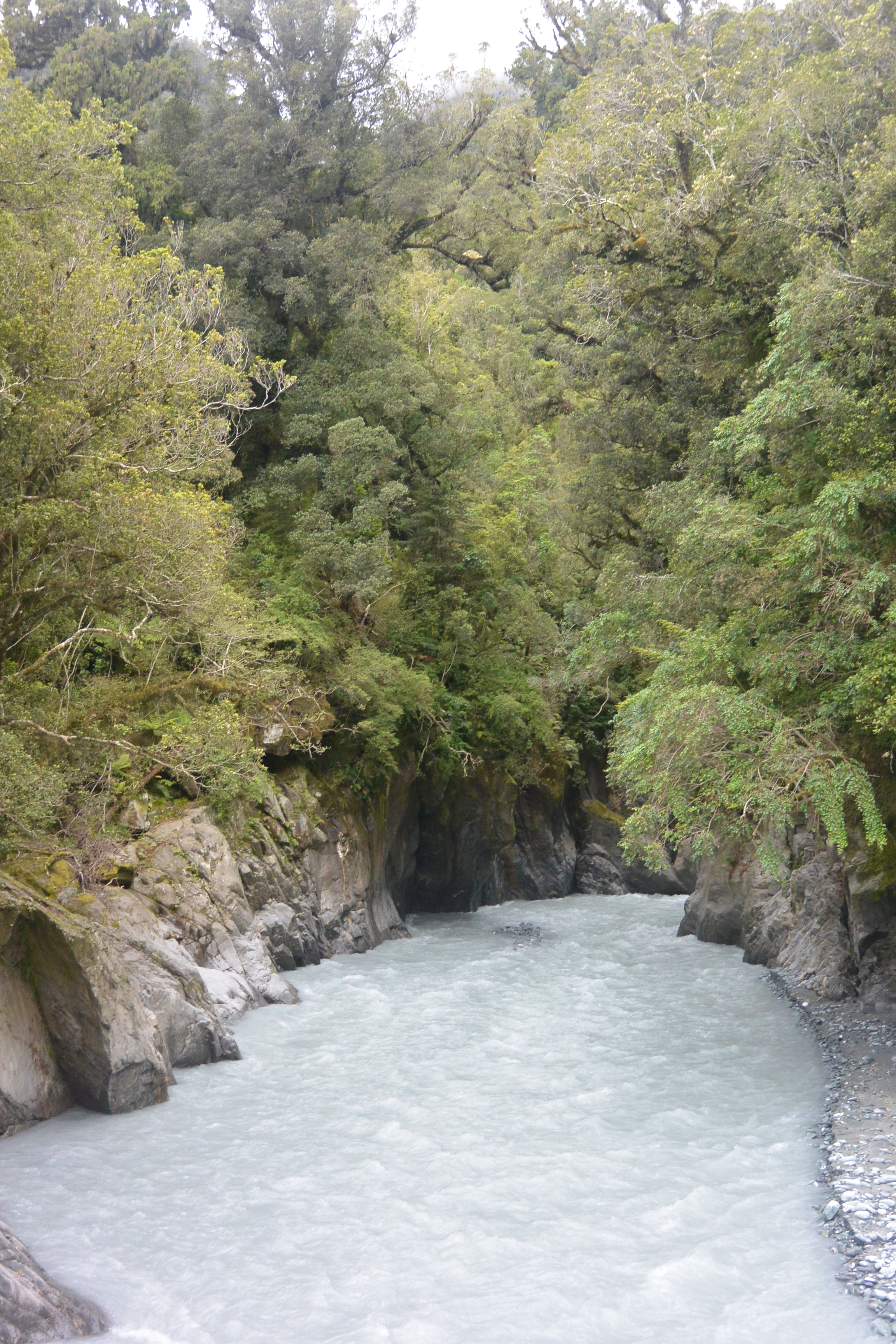 Franz Josef glacier itself was our first trip of the day, and we headed out early while the valley was still wrapped in fog. The river actually prevented one approach,