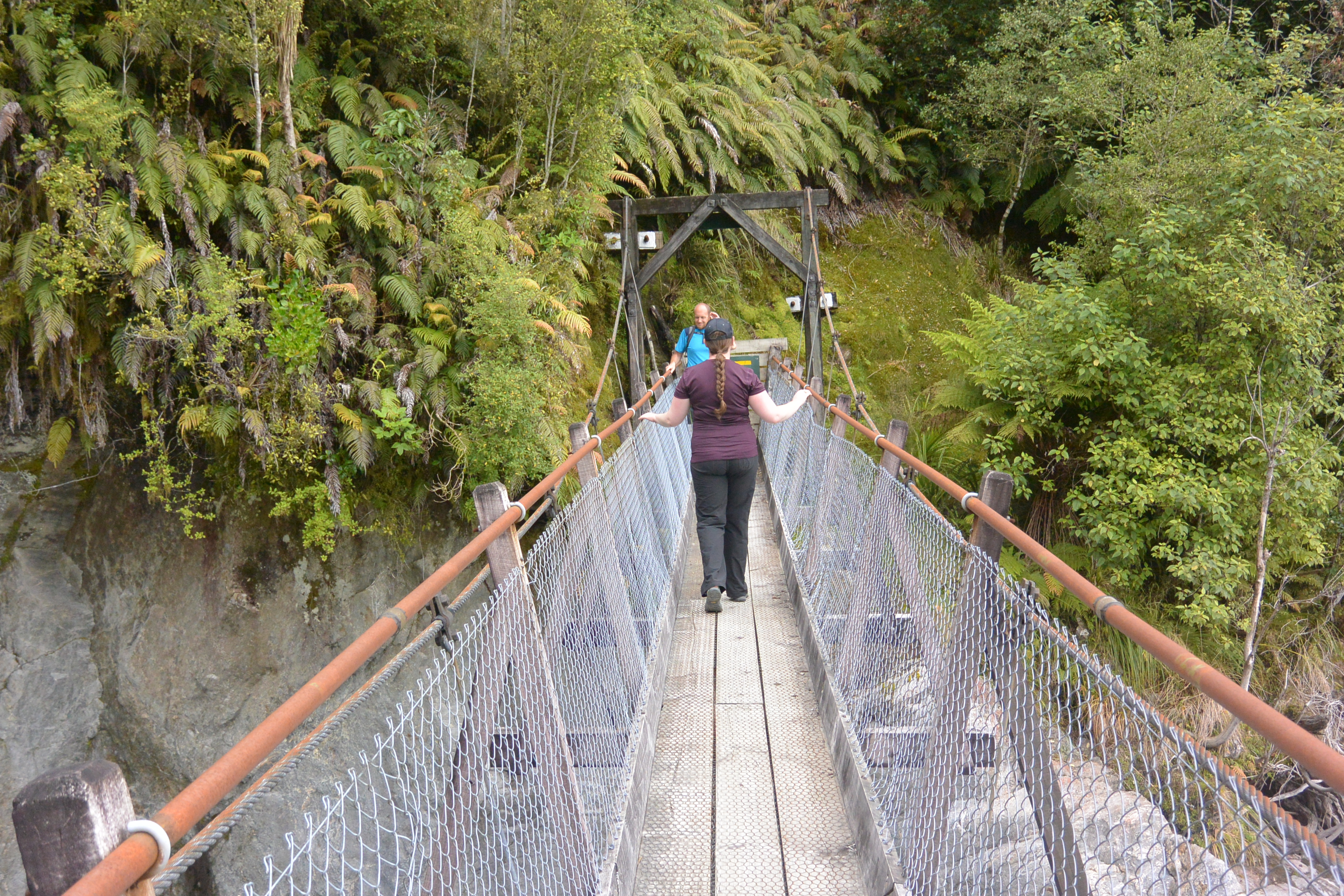 Returning to town, we recalled we'd seen several impressive trail bridges with no one on them on the other side of the glacier valley. Nick looked into seeing what trail