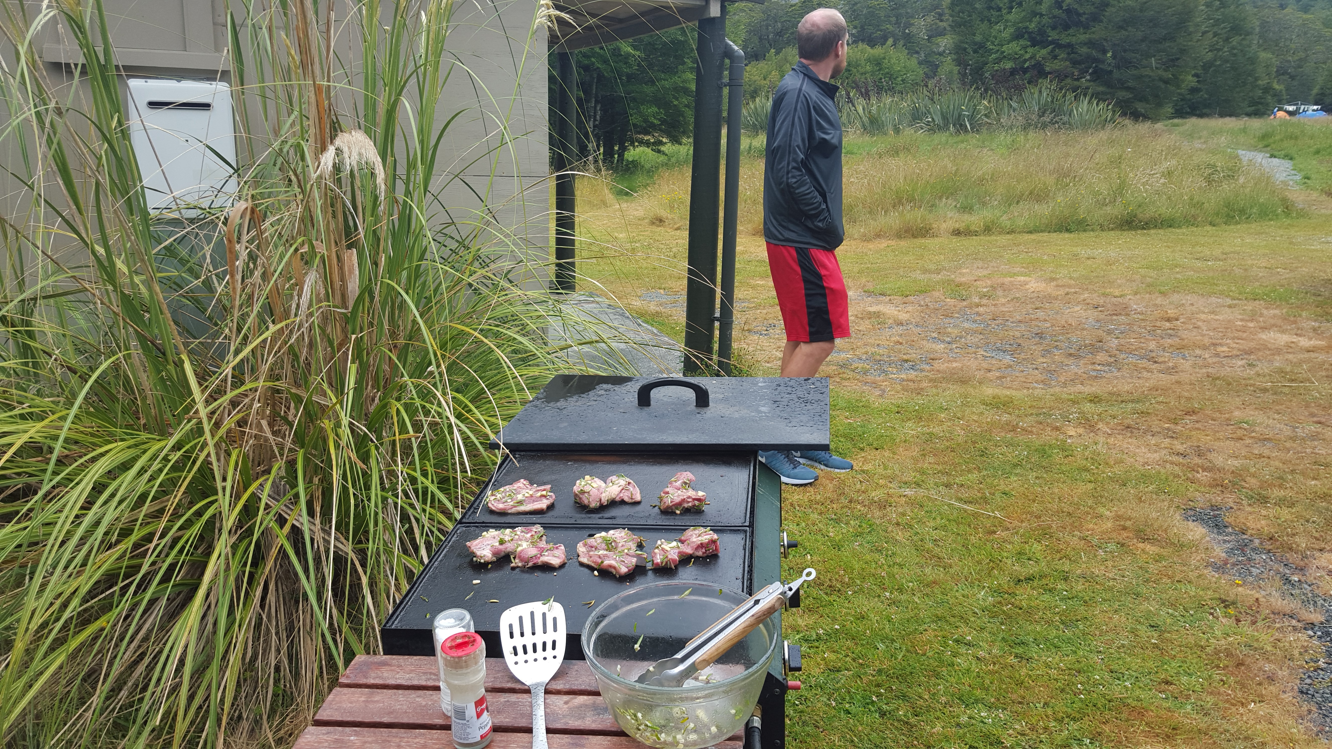 We returned to Knob's Flat around 4 pm, and checked into our rooms. We had PC (our innkeep) bring around the grill, and I grilled some lamb shoulder chops, which were excellent. We accompanied