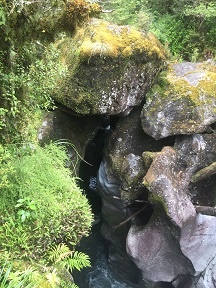 Back at the car, we hopped over to the trail to Lake Marian, the early bit of which featured a falls. After the viewing platform, Nick proceeded to hike up to the lake, which went through quite a boulderfall.
