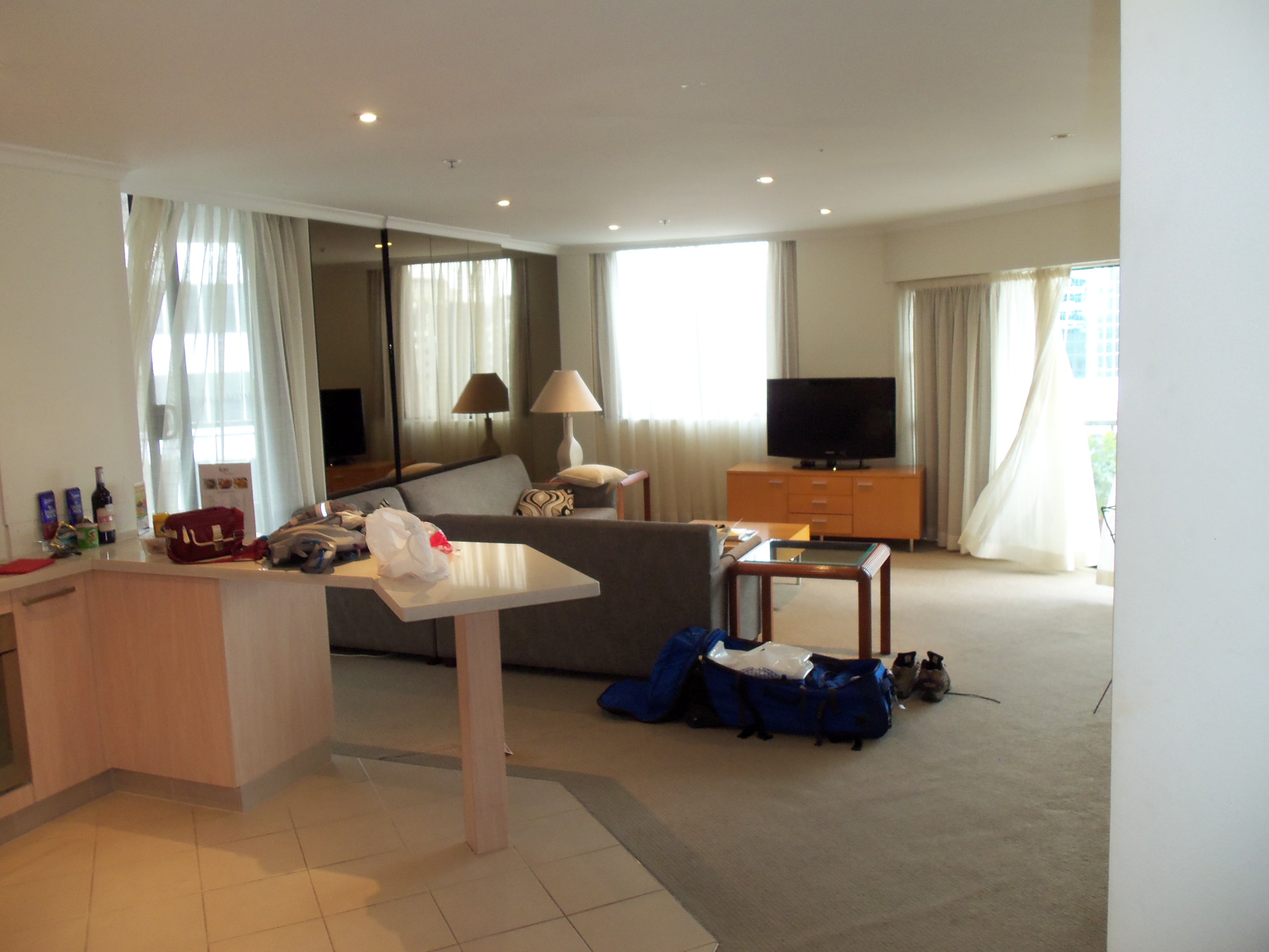 The flight was uneventful, and we arrived at LHI’s “airport” (an airstrip with a house in front of it) about midday. Our innkeeper met us there and drove us and our baggage to our cottage. The location is convenient, but this has to be the most uncomfortable mattress I’ve slept on since my days at Handai. And there was a giant (ok, like 1.5”) spider in the bathroom. I made my husband end its miserable life before I would go in there again.