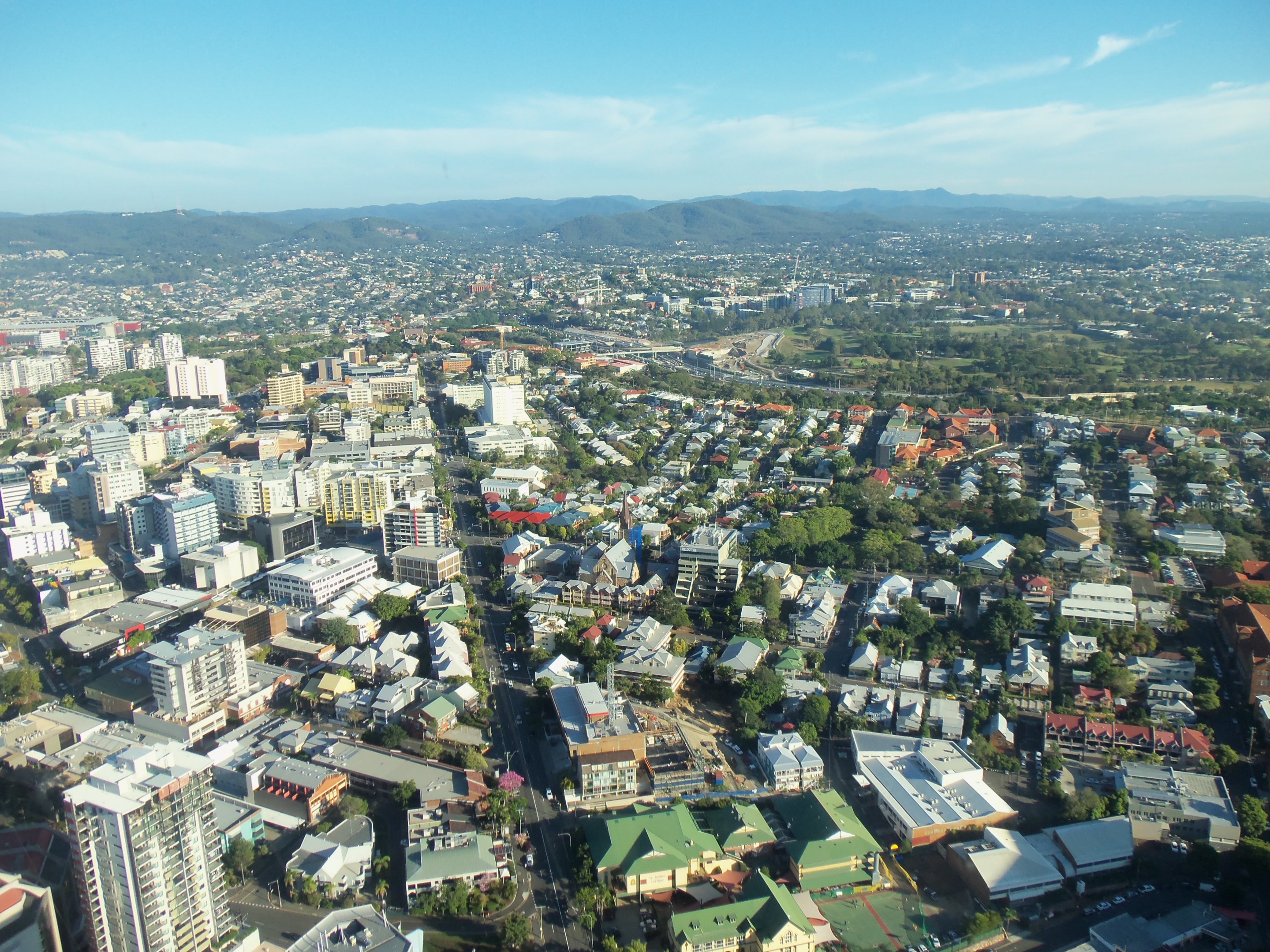 Our hotel looks like the Tower of Evil, here in this sparsely populated mixed residential district that looks like a failed housing redevelopment project. We’re on the 69th floor, with a stunning view of the mountains and the city. And we have to pay $35 a night for parking the land boat. Go figure.