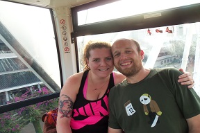 The flight was uneventful; the fun began when we landed. Our bags came in when Matt and Ashley were in the bathroom, and instead of putting them down one at a time at an interval on the belt, all of the bags were dumped on there more or less simultaneously. One guy’s even fell off. I ran off to catch our bags, and when that was over Matt came in and said that there was some sort of problem with our reservation and we had to check into their main office in the parking garage. Of course, there is a line out the door at the main office. Fortunately, Matt got into the Gold line (I’m not sure if he’s a member or not, but oh well) and we weren’t there as long as I was afraid we’d be.