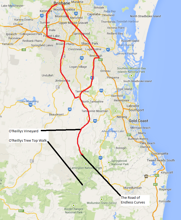 We were up and at it early again, this time to the southwest of Brisbane to check out another mountain range. Breakfast was whatever we could find laying around the apartment (cheese, more cheese, some crackers and cookies). Our first stop was this resort on the top of a mountain that had some boardwalks and such. The road up there was really winding and progress was slow, so we didn’t spend a whole lot of time there. They did have a ladder so you could climb up one of the trees. The view was beautiful.