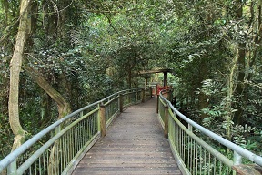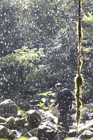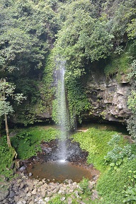 After that, we went on our originally scheduled trip to the waterfall. We were originally going to do a full 3km or so circuit trail, but we were running a bit behind, so we just hiked down to the falls and returned. It was a pretty nice waterfall, with a path behind it so you could walk underneath.