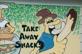 We pressed onward to the Big Banana, which is some sort of tourist trap with a big banana in front of it. We were pretty hungry, so we hit their café first. It took them like 20 minutes to cook our hamburgers, but I had a chocolate covered banana afterward which was pretty good.