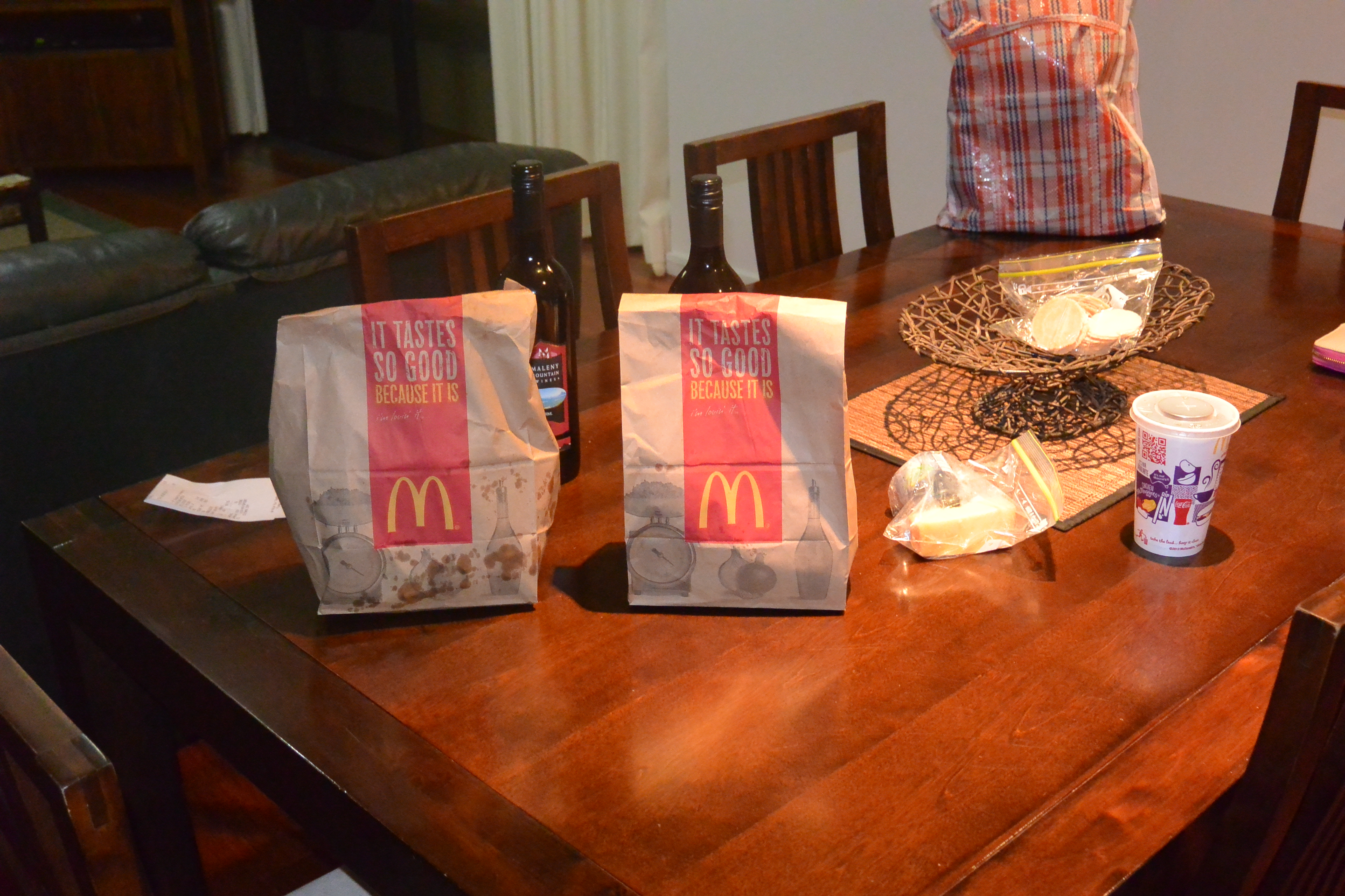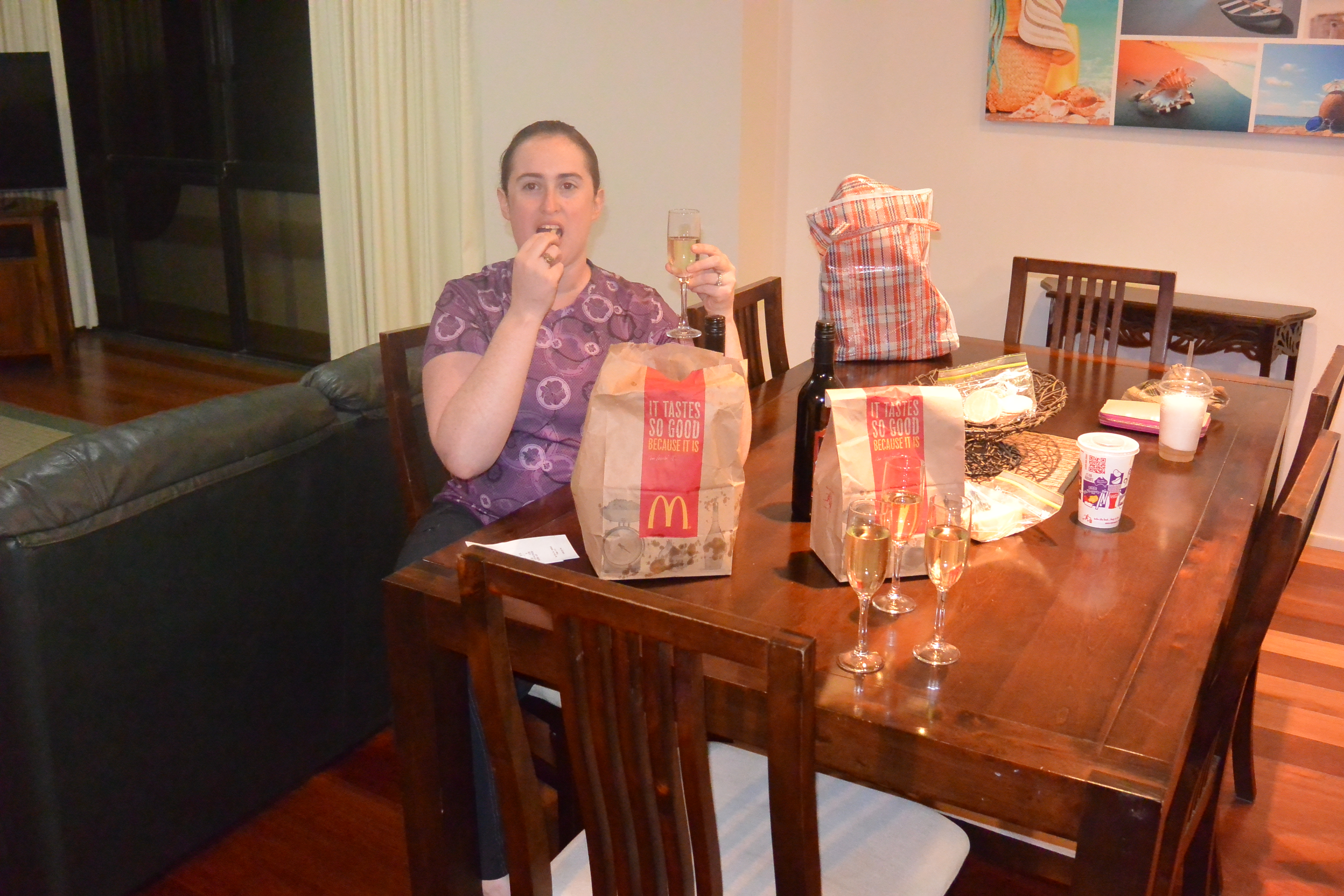 Earlier, I’d suggested we have McD’s for dinner alongside our wine, so after a quick trip to the golden arches, we had dinner and a few bottles of wine at the hotel while playing poker with all of our Australian change. There was also cheese.