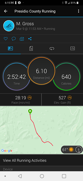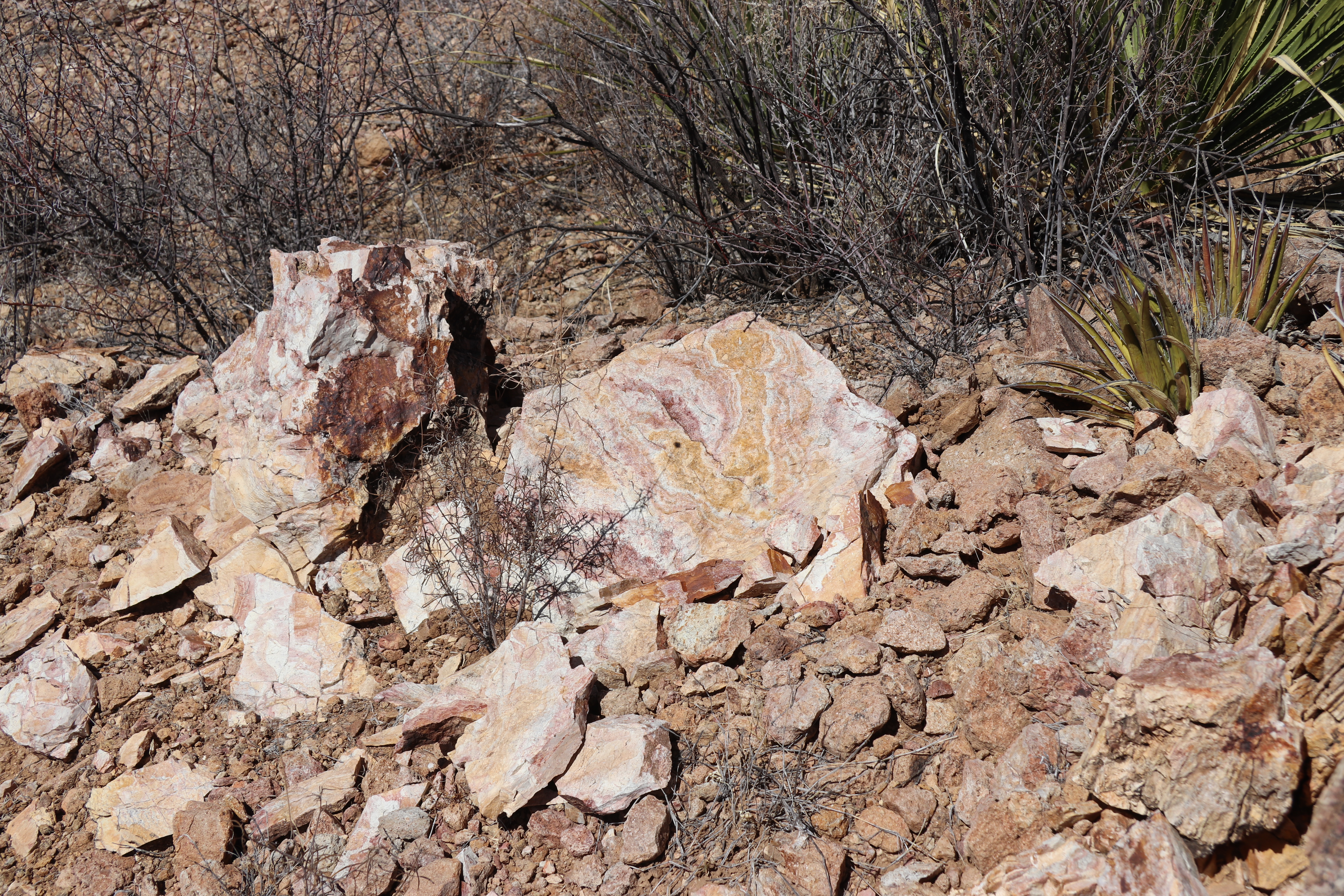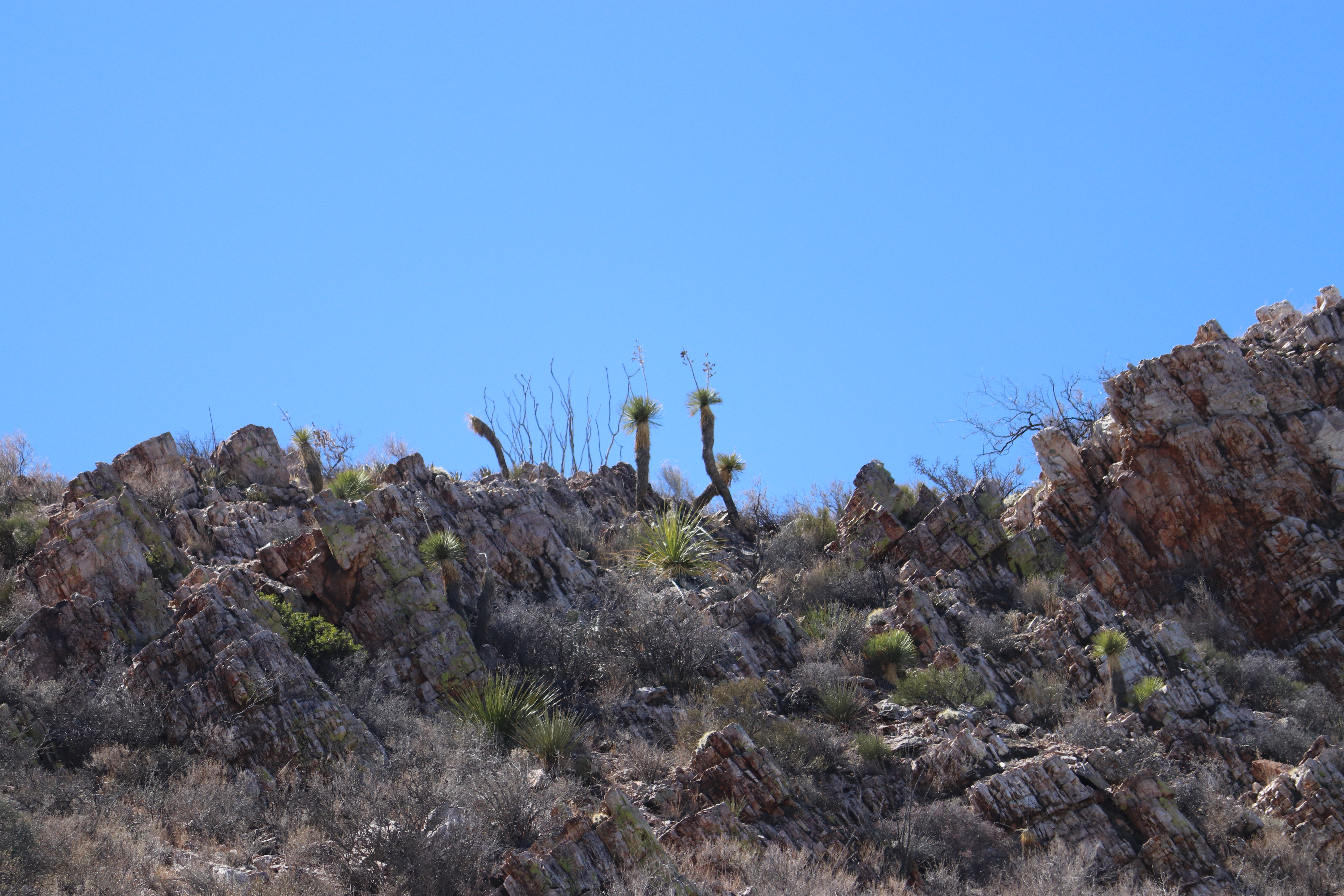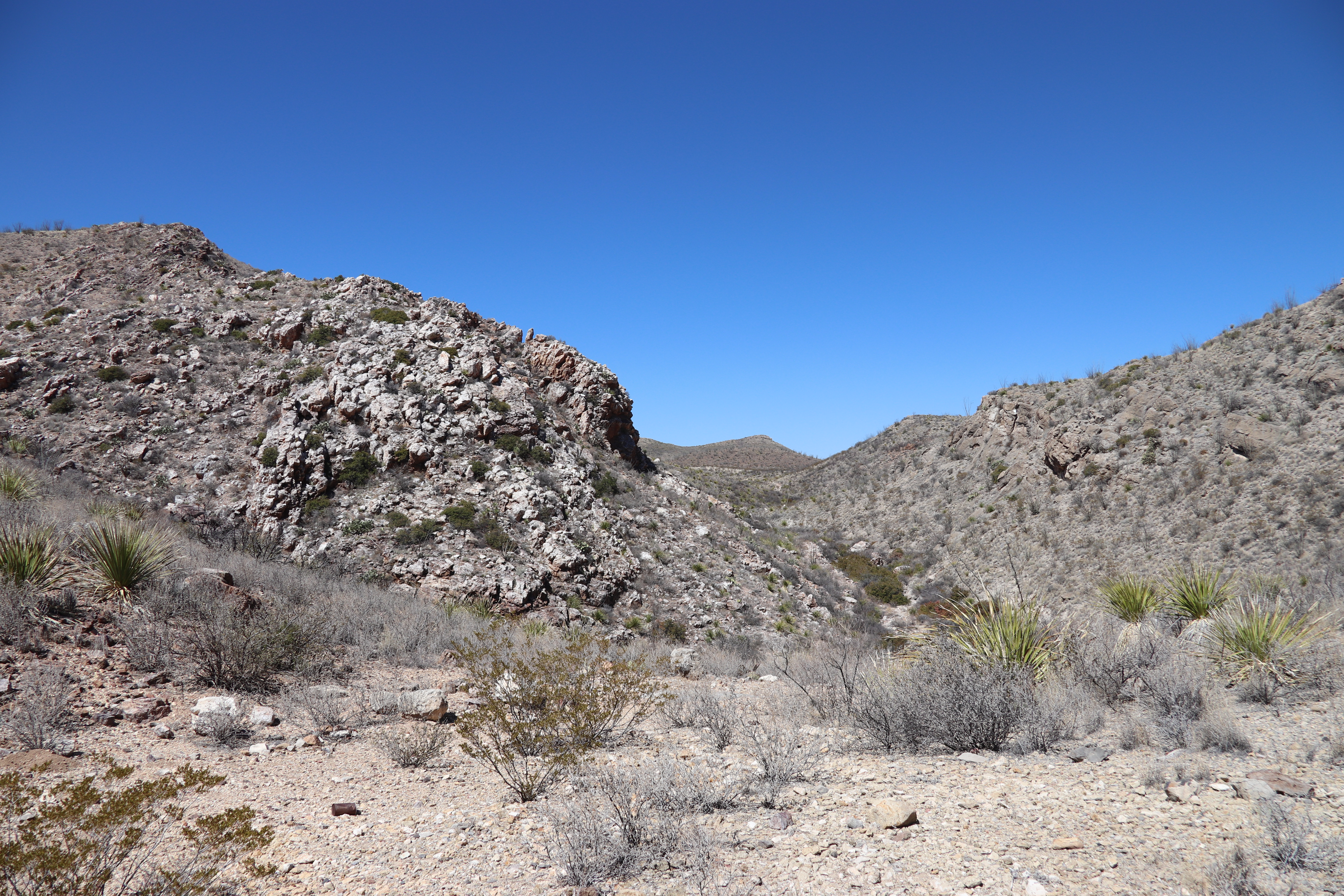For the 4th day, we headed into the Big Bend State Park and the Solitario, in particular, to do the other end of the Burnt Camp trailhead. As I hadn't actually checked the length of this segment, we ended up turning back just 0.2 miles short of the end of the trail, but it was a good hike and the weather was excellent.Mouse over the pictures for commentary, click for large images