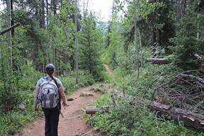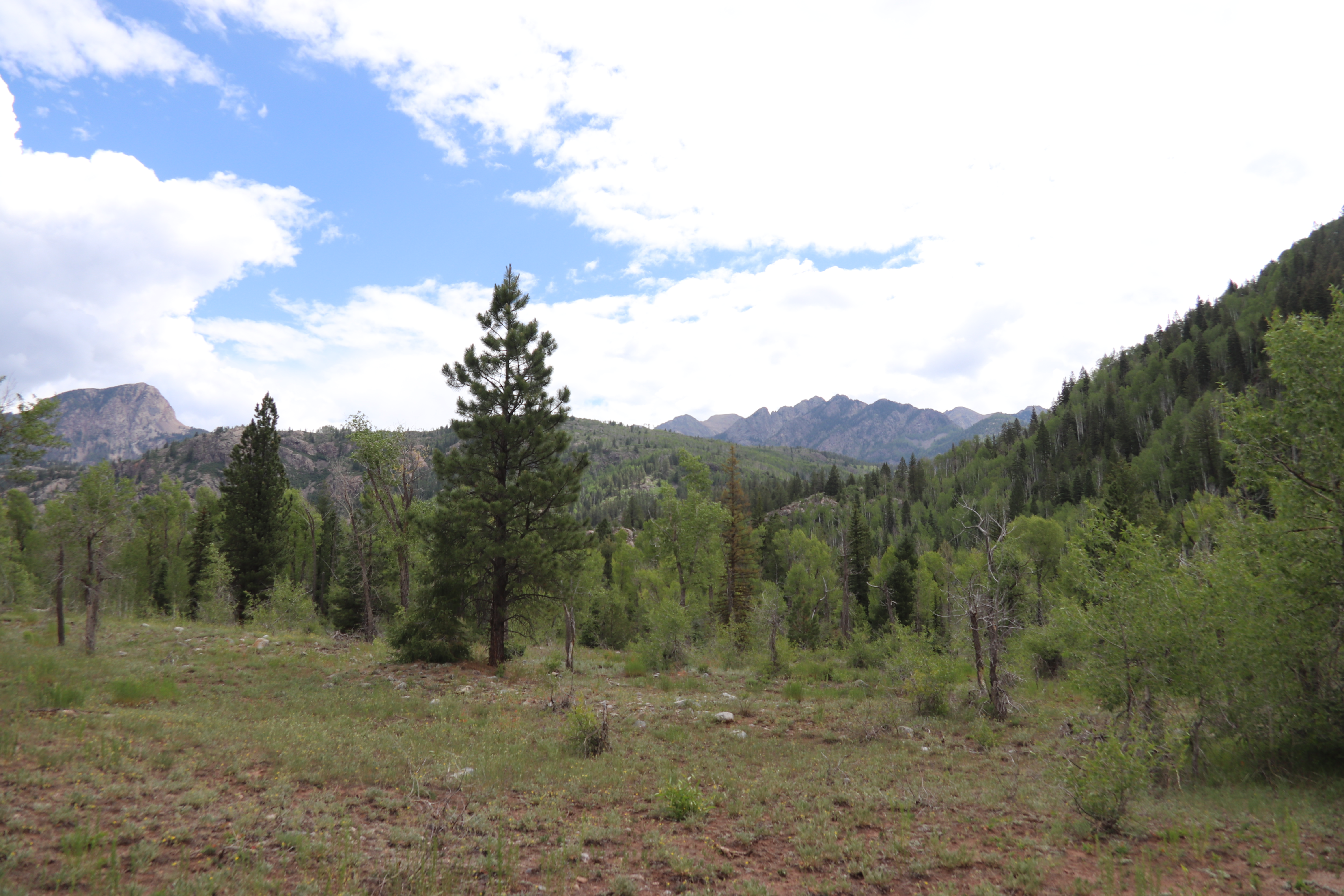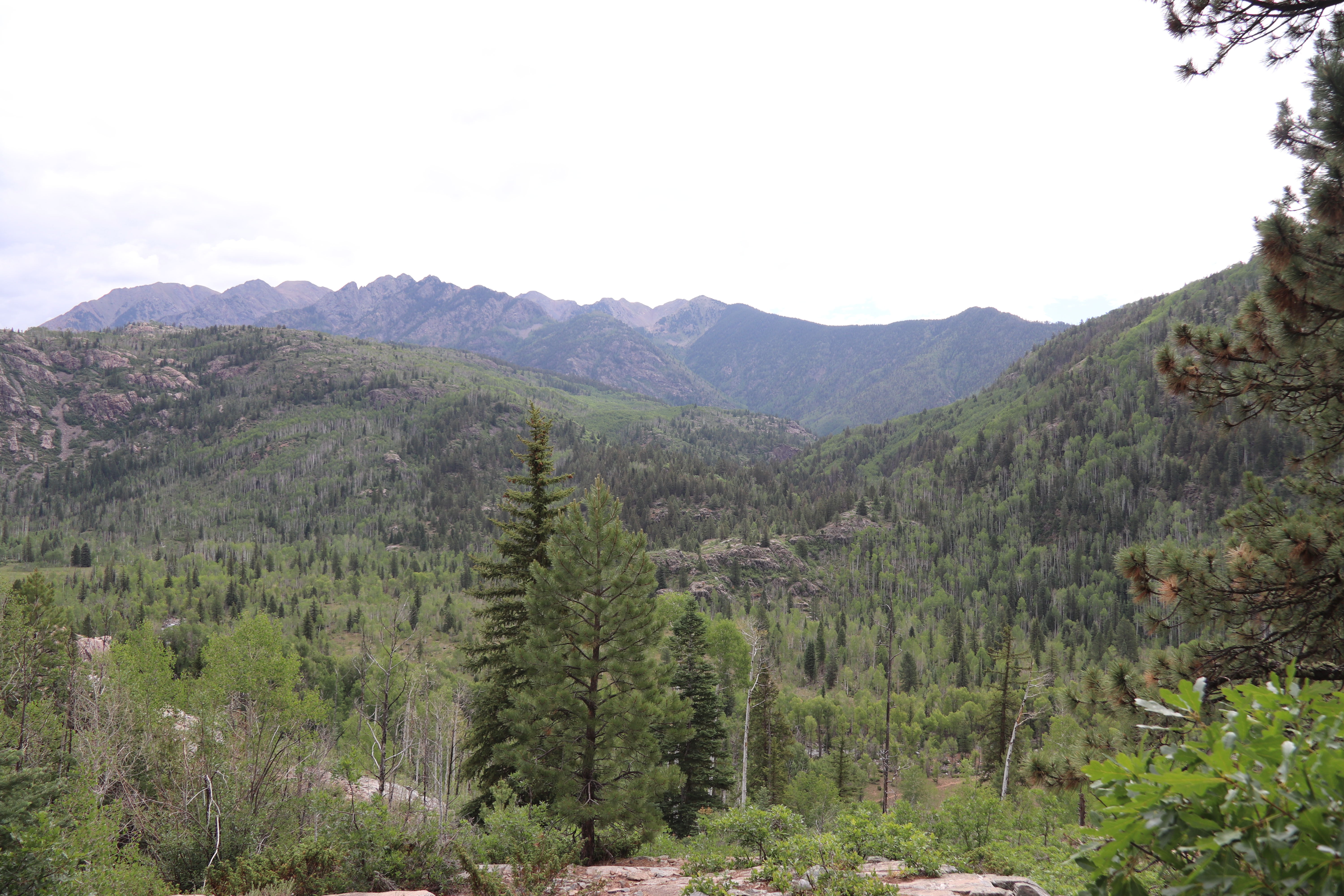 We had arrived late the previous day, and checked into the general Palmer hotel in Durango. We woke mid-morning, and headed north towards Silverton. I had originally proposed a different hike, but reconsidered it on our way due to the elevation gain, and we decided to do a somewhat flatter hike near the ski town of purgatory. The trail was actually quite busy, and lead down to the upper animas river. Unfortunately, it was also heavily frequented by the local mosquitos, who bit us up pretty badly.