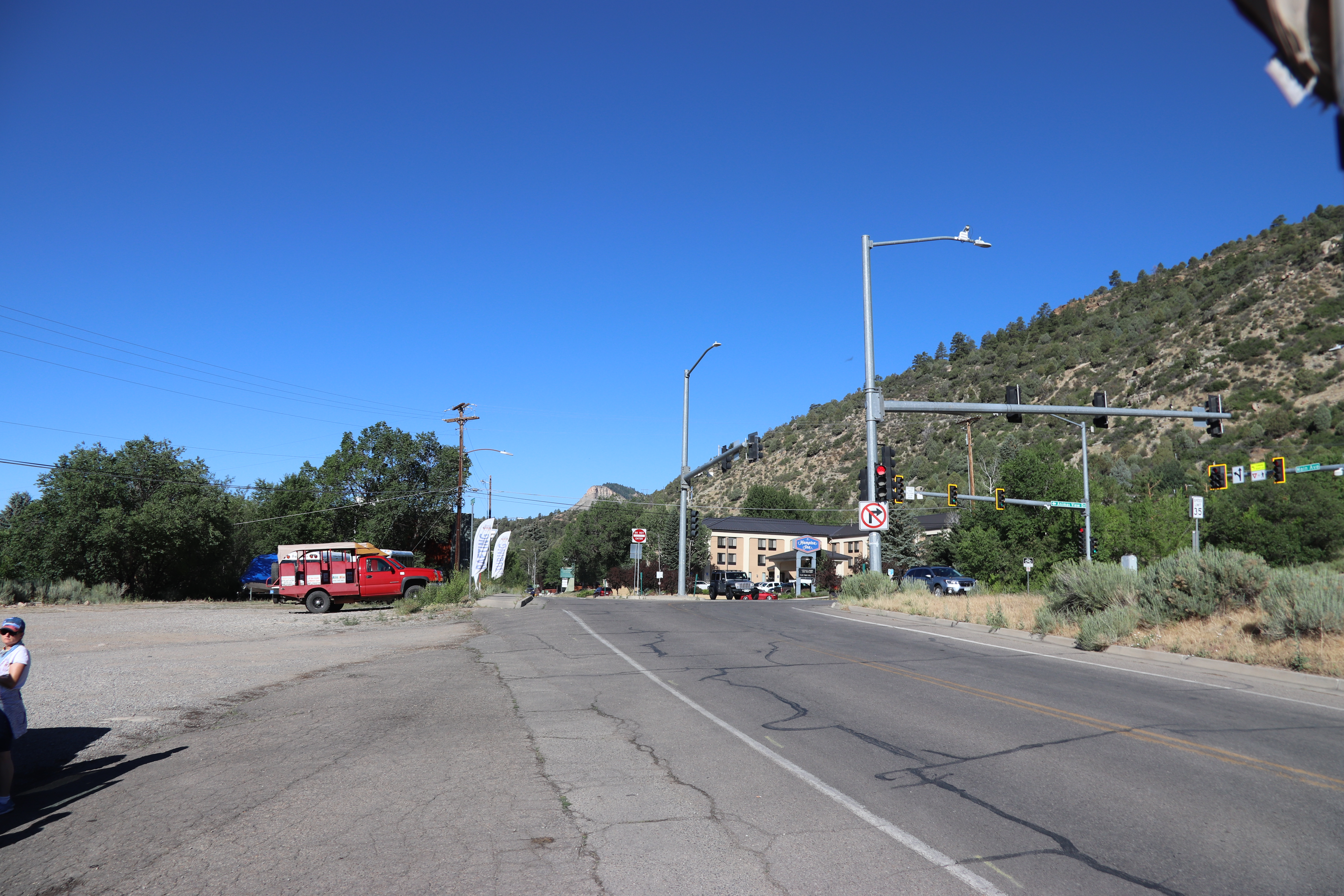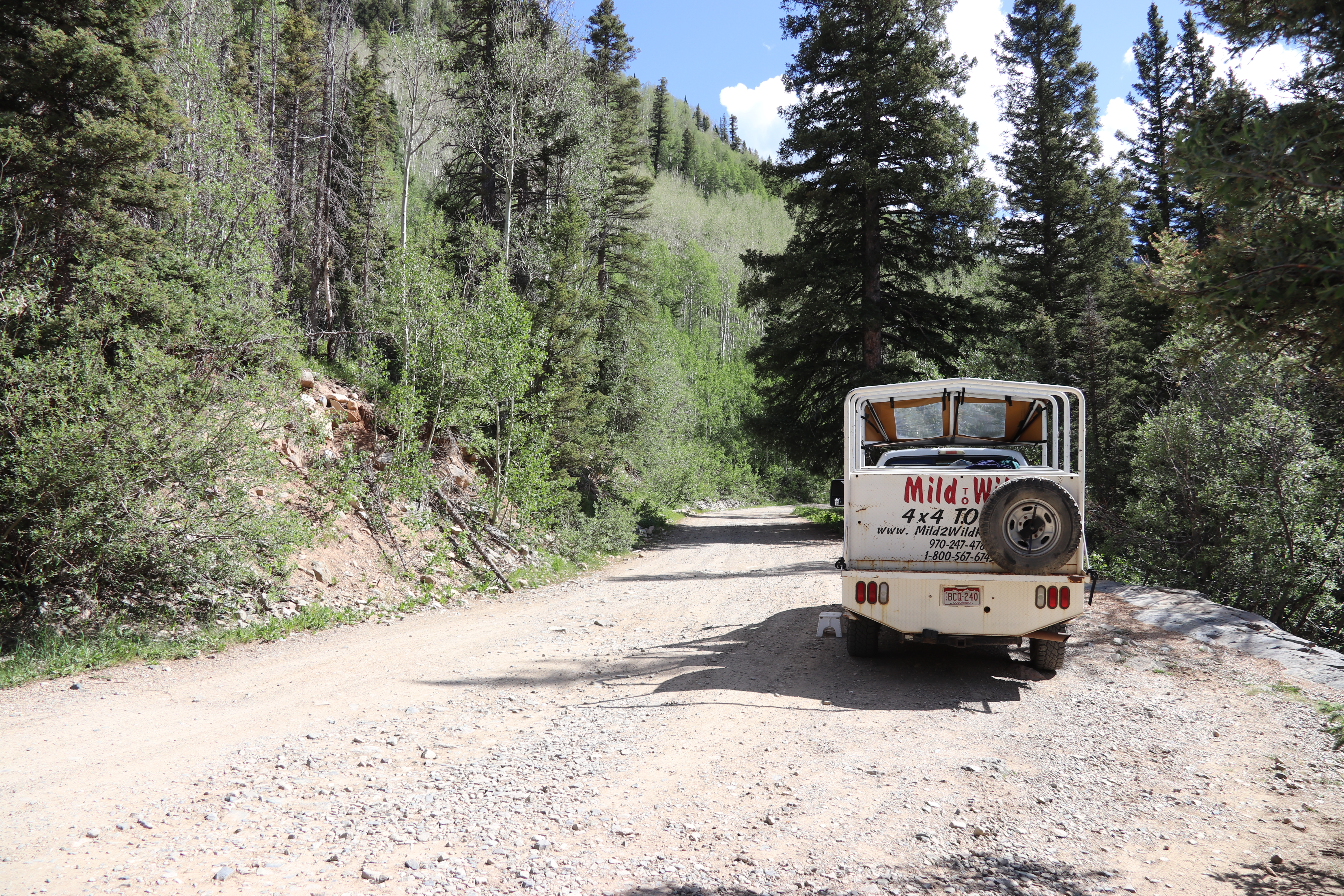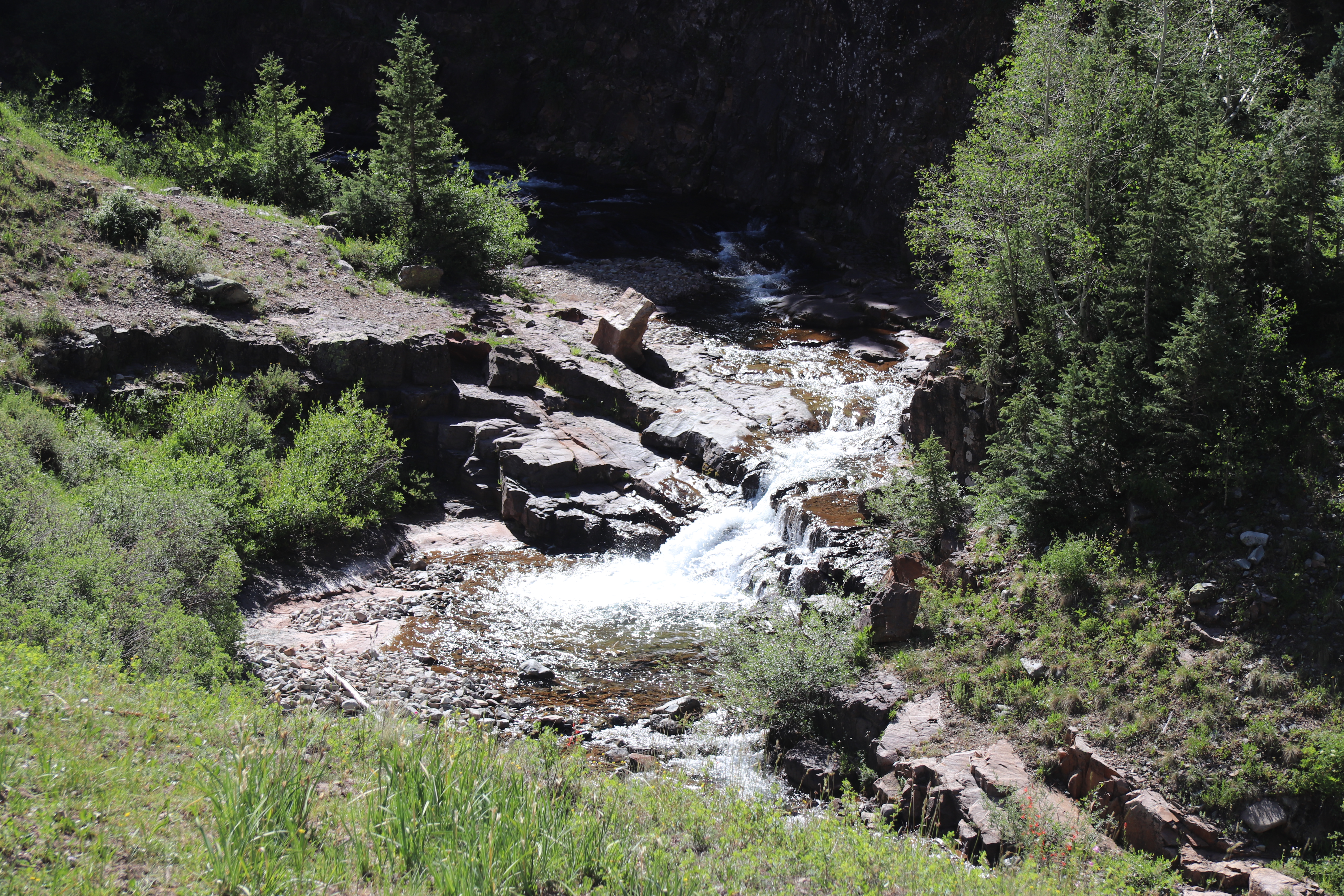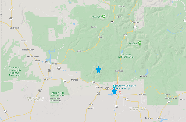 We had reservations for a morning Jeep tour into the la plata mountains, and an afternoon of rafting on the lower Animas river. The morning was cool but clear, and the ride up through the mountain roads to the summit, was reasonable even with the bumps, as the gravel road was mostly local granite. Our guide, jay, pointed out several ruins from the mining days, and we stopped at a number of scenic waterfalls on the way up. We returned, reaching town around noon, and had a short break for lunch, which we took at the “serious Texas bbq” restaurant nearby.