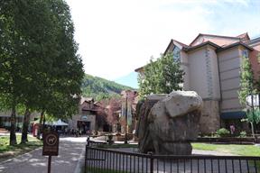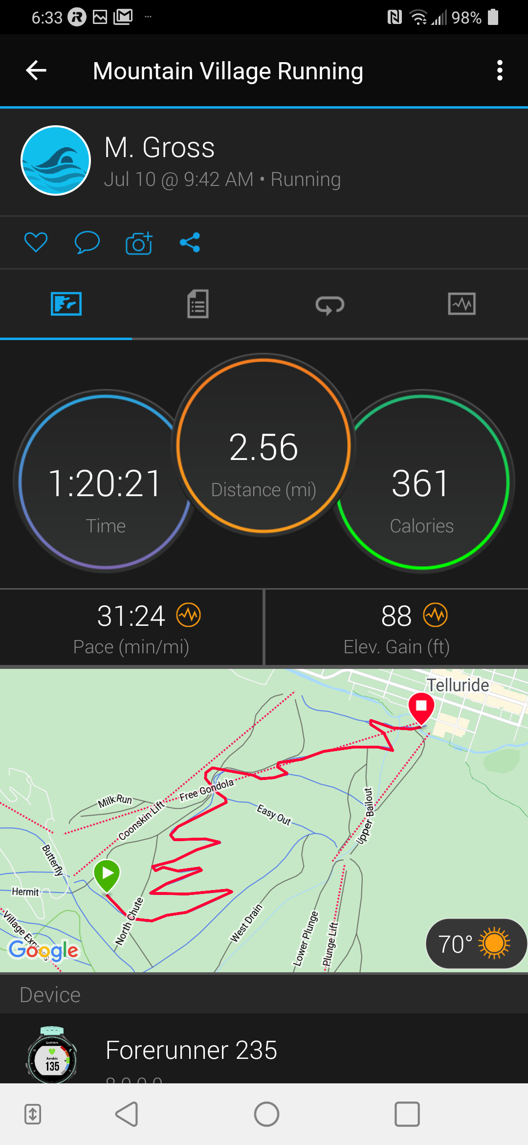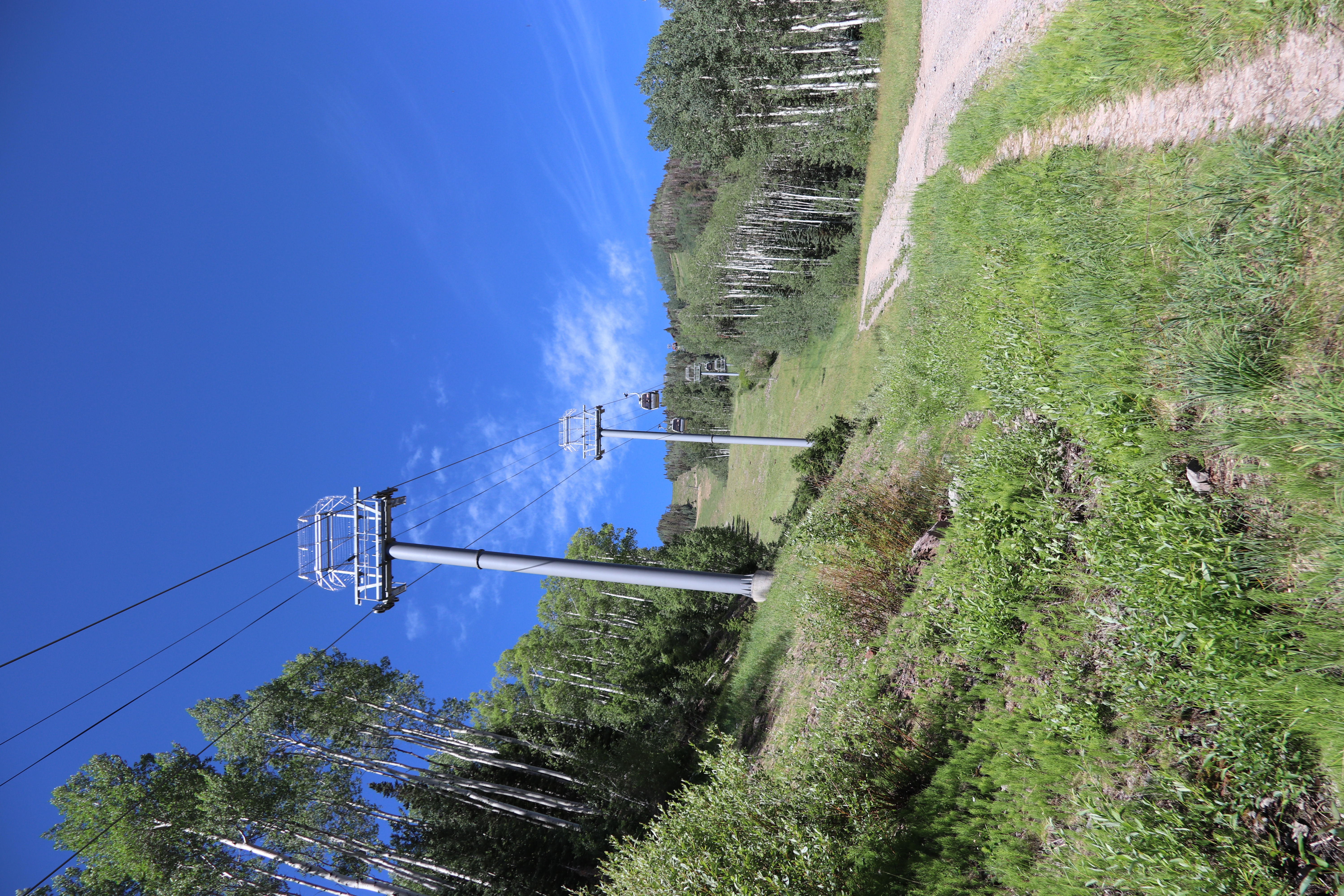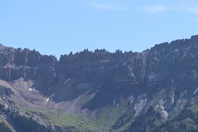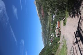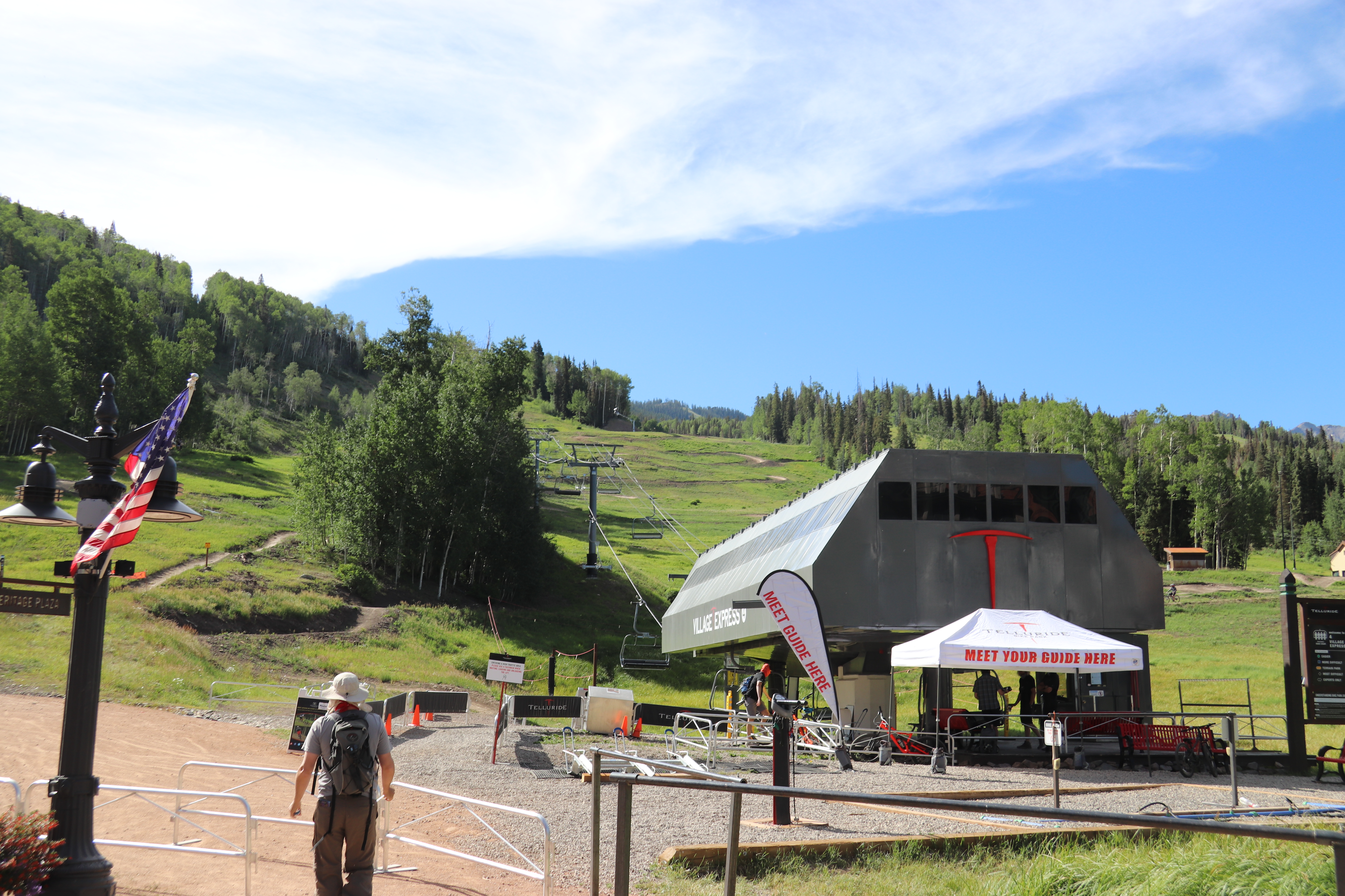 Jens leg fortunately had suffered painful but superficial injuries, and we decided to take the free gondola up to the peak overlooking town and hike down the trail there to the town of telluride (our hotel was actually in the ski resort a valley over from the town). The weather was clear and cooler than it had been at Durango’s lower elevations, and the path was a gravel road in good condition.