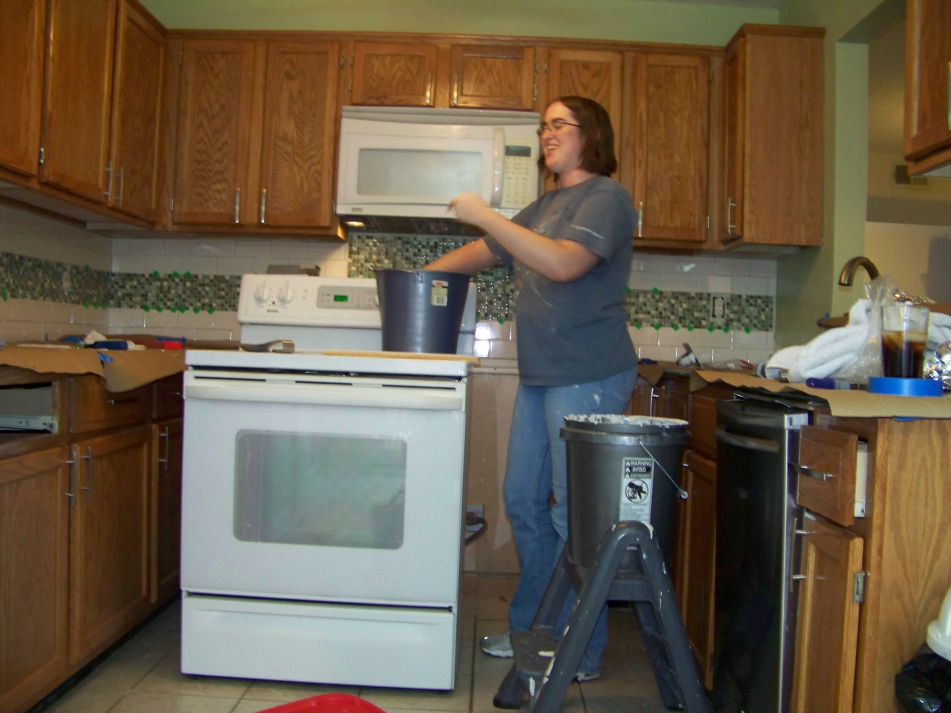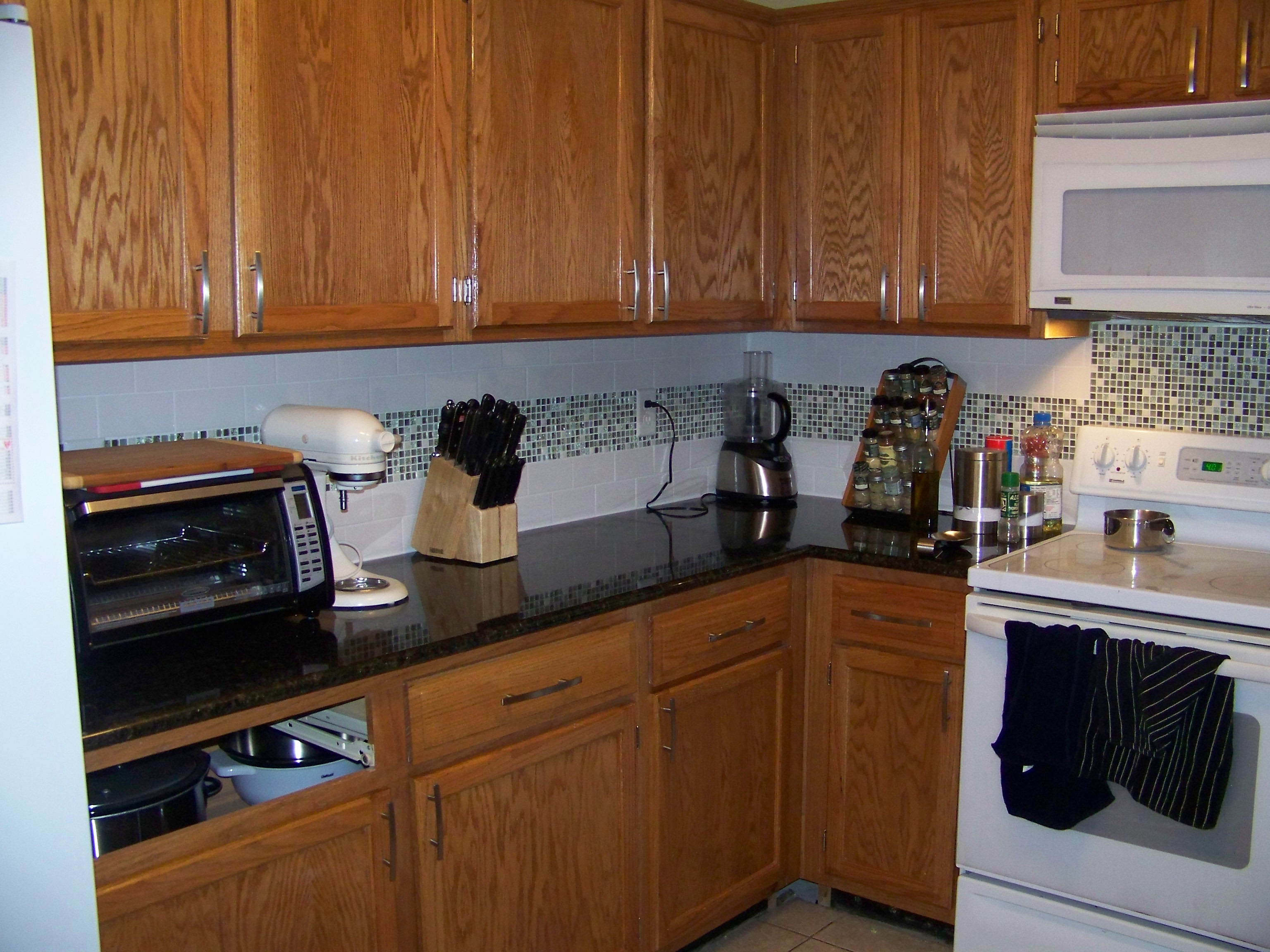 There were a number of renovations to our house this summer, we replaced the old damaged laminated countertops with some new granite countertops, then added a tile backsplash (Mostly Jen, I just cut tiles, and poorly at that) and painted much of the house blue.