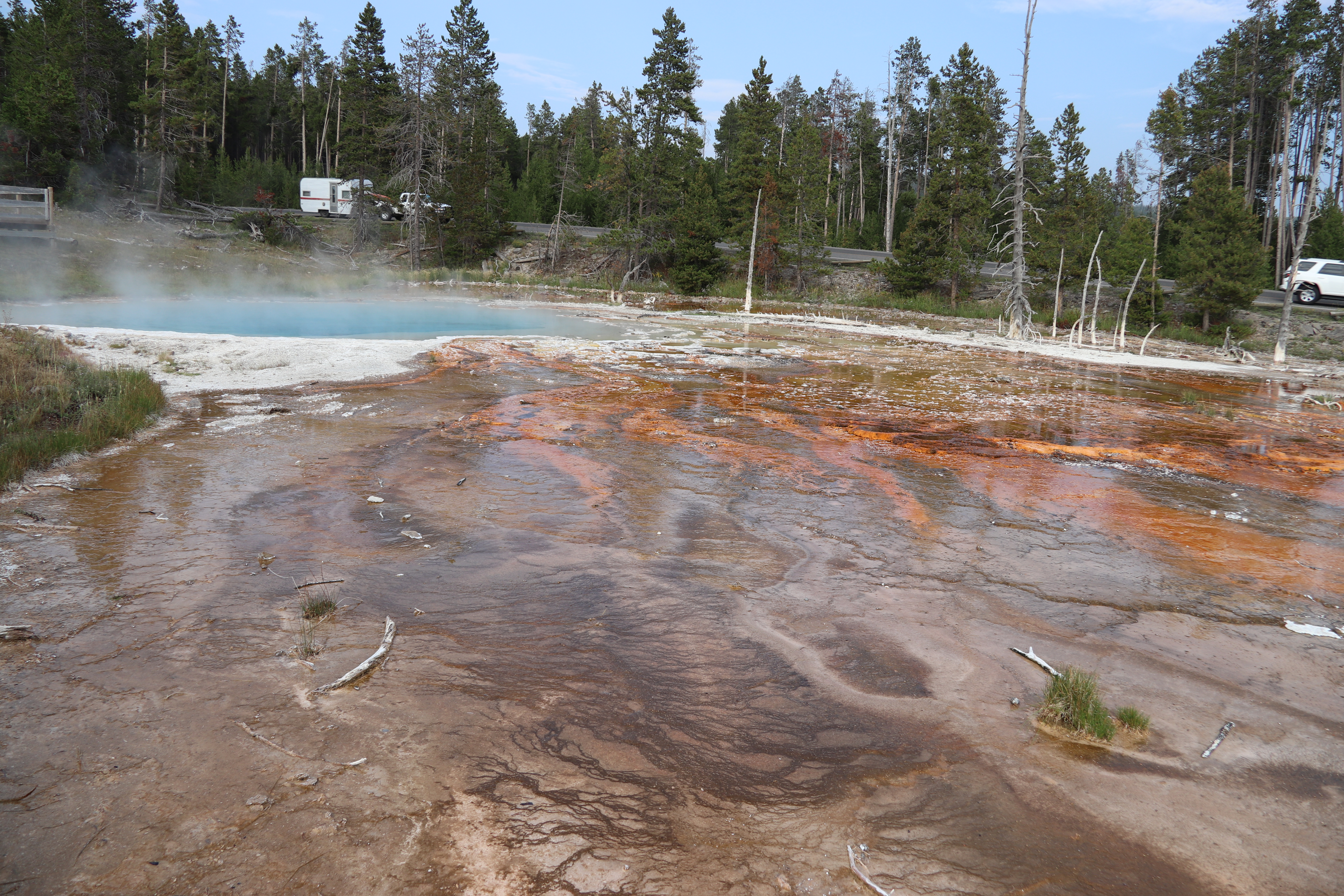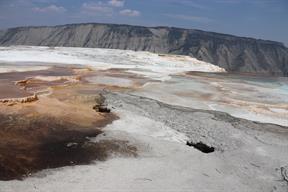 and we stopped at Mammoth Springs as our first sight. Richard had been to Yellowstone as a child (2010) and Drew had never been, so I