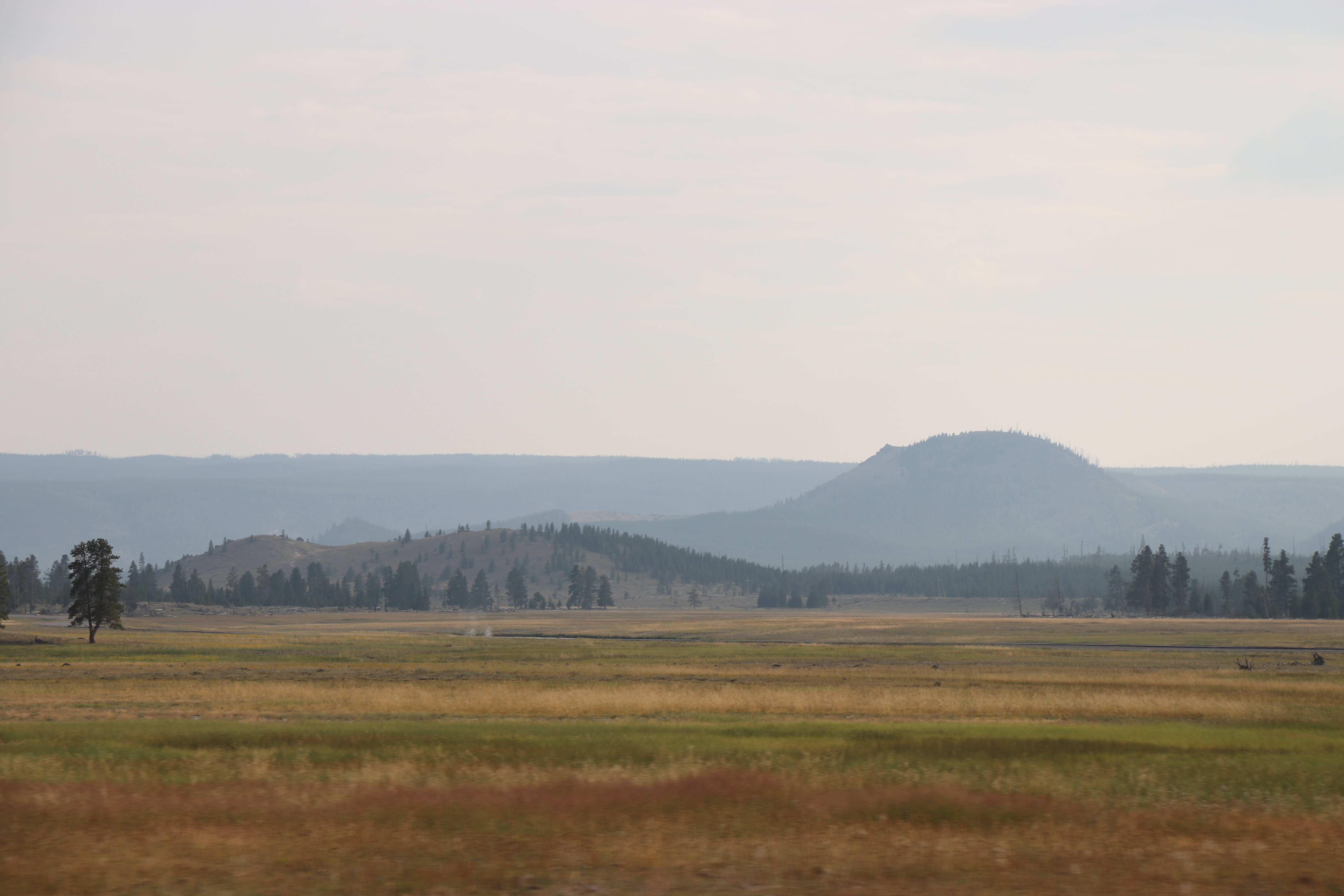 We arose and headed off early in the morning, heading west along I-90 to enter the park by the north gate. The drive was easy, but